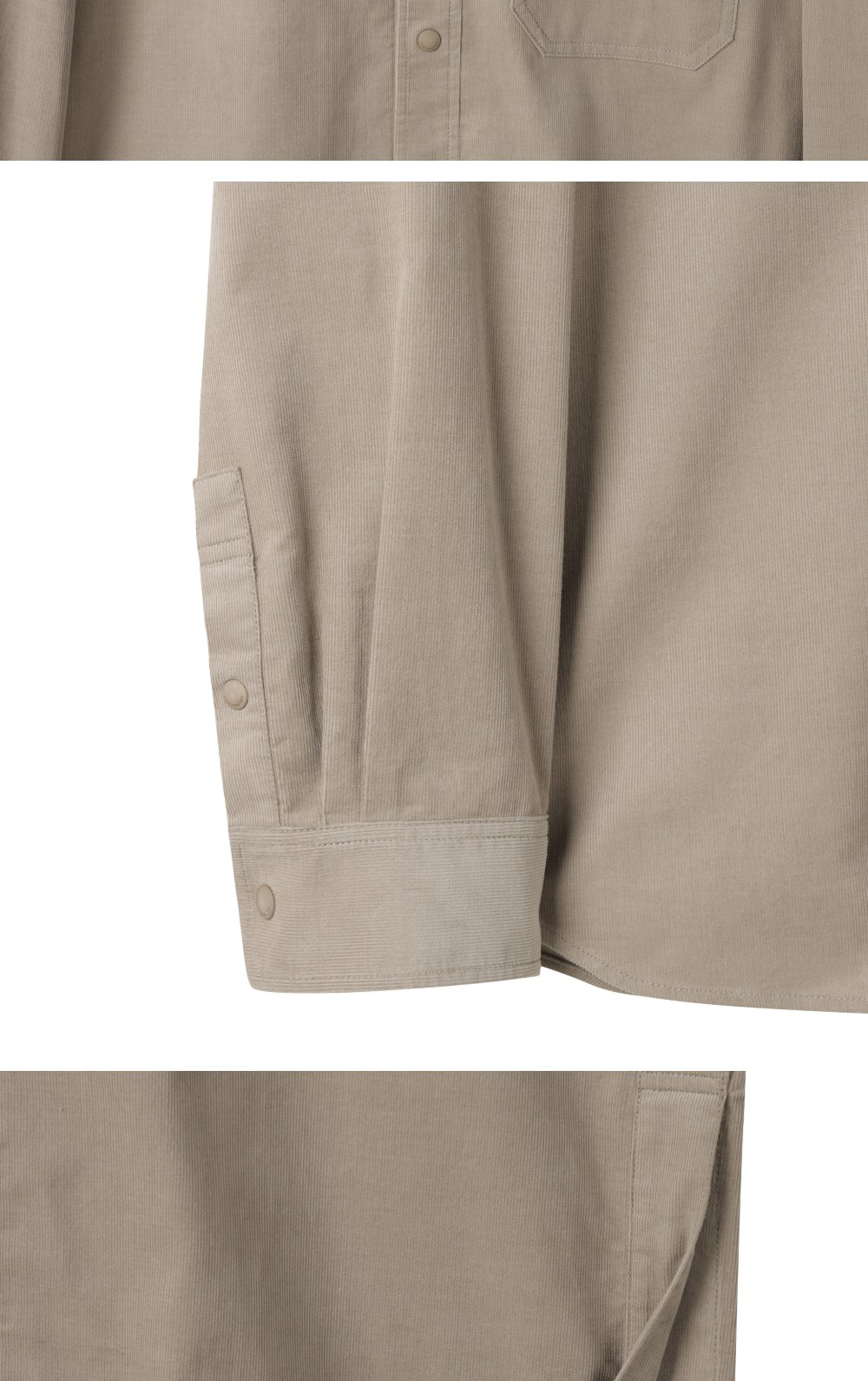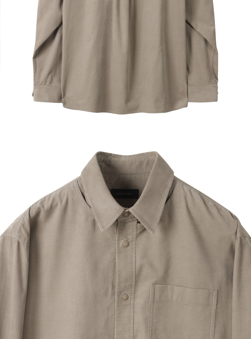 커스텀멜로우 오버사이즈 핏 레이어드 코듀로이 셔츠 베이지