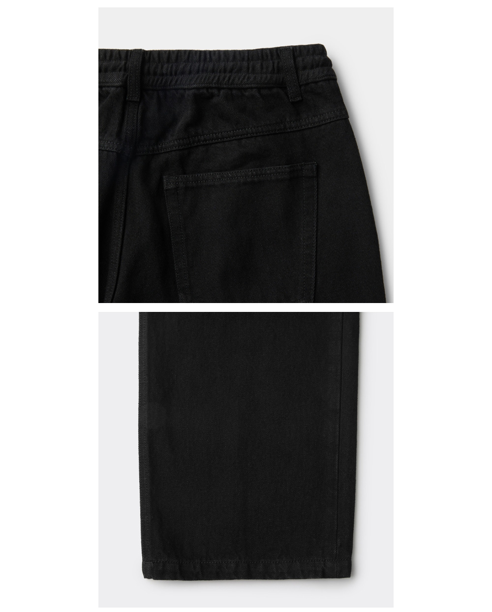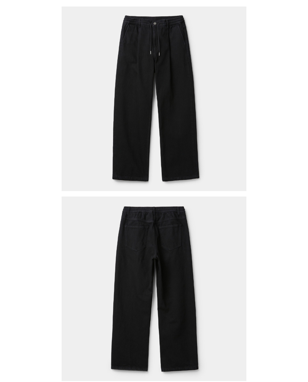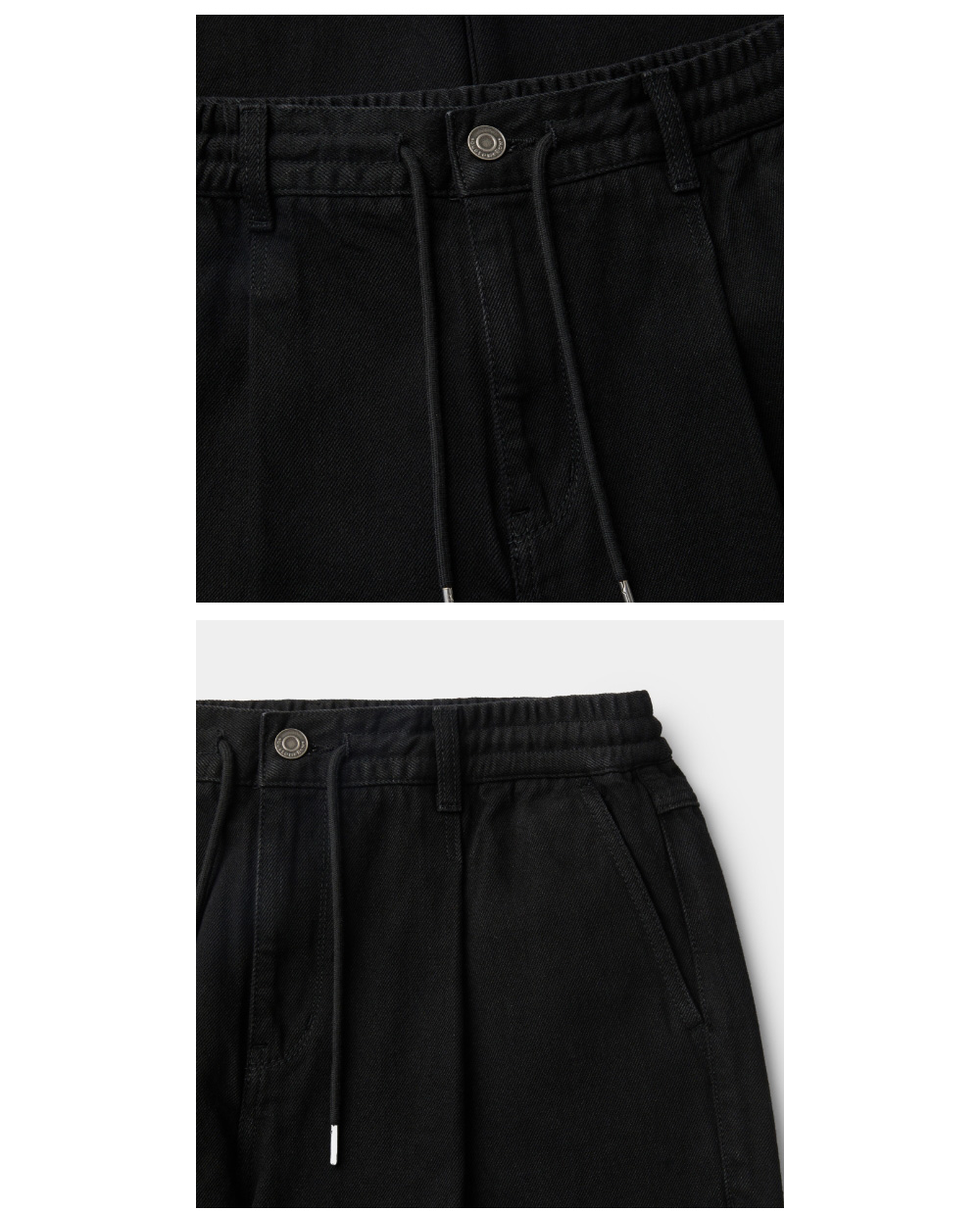 커스텀멜로우 루즈 핏 드로우스트링 진 블랙