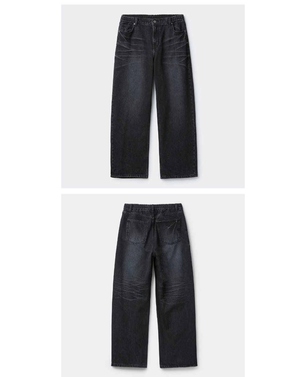 커스텀멜로우 와이드 핏 엠보 워시드 진 블랙