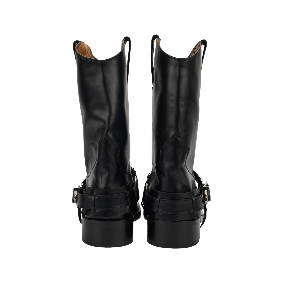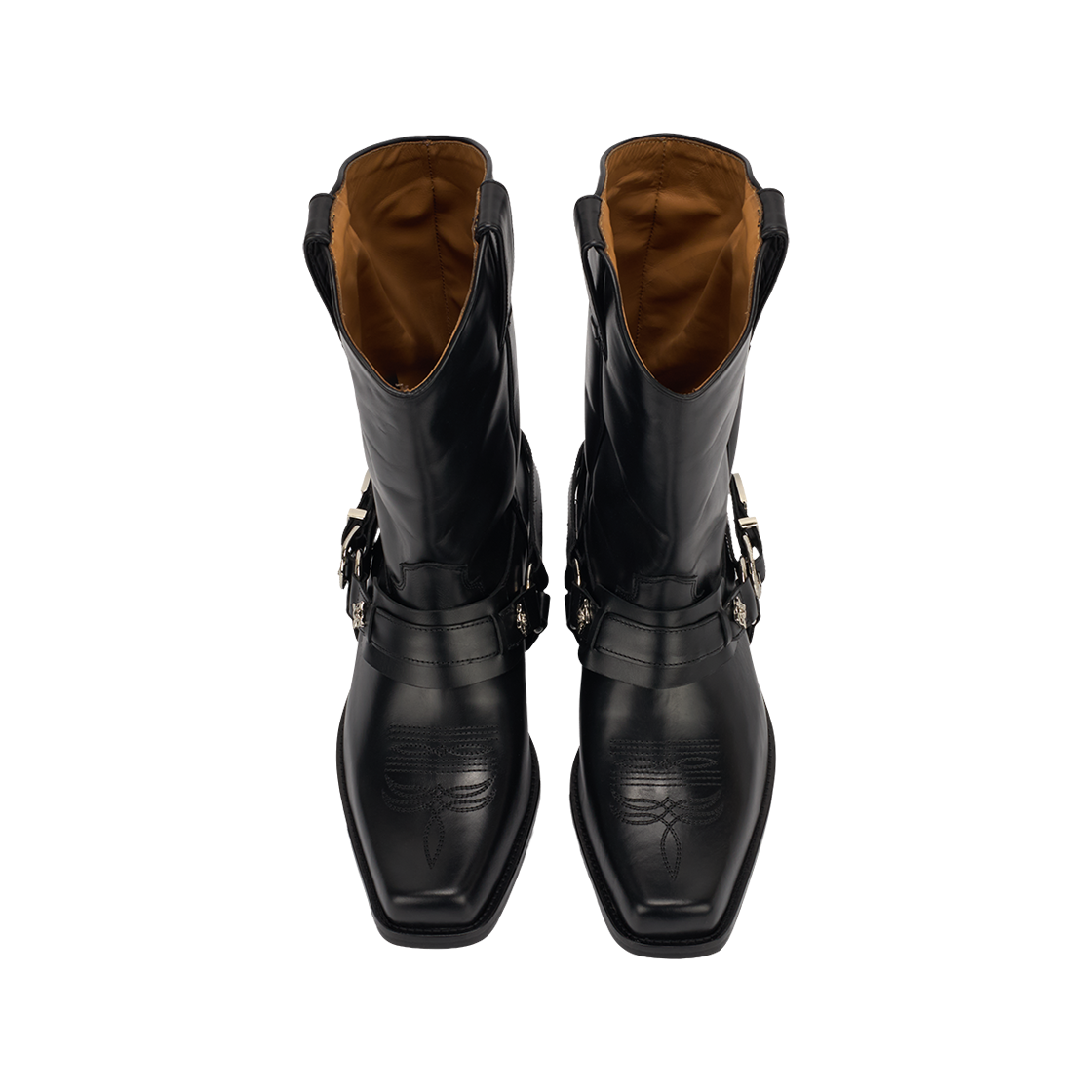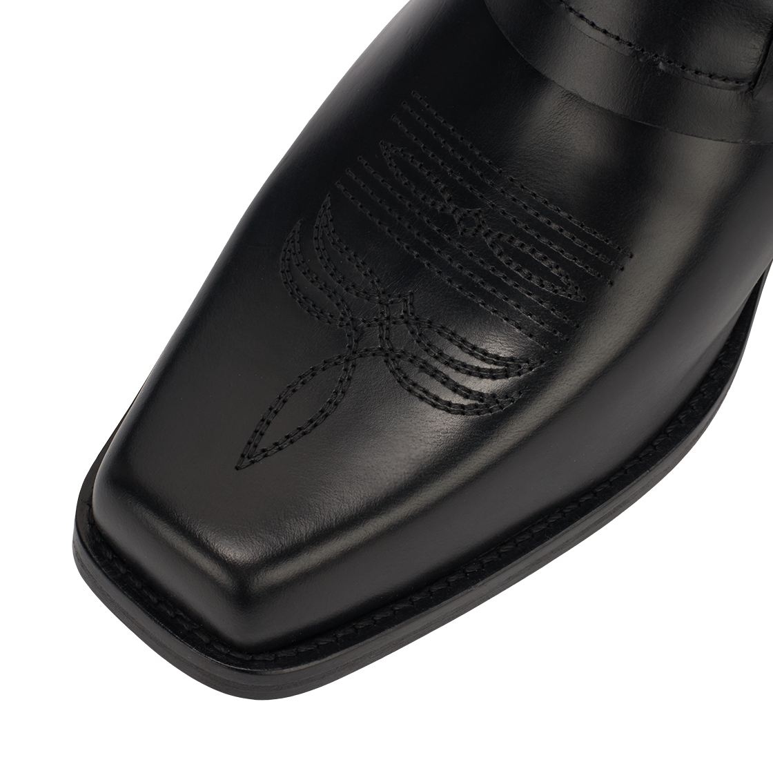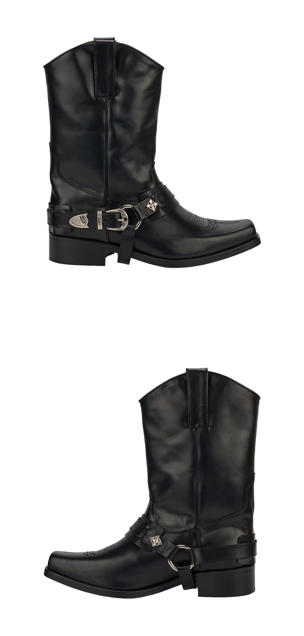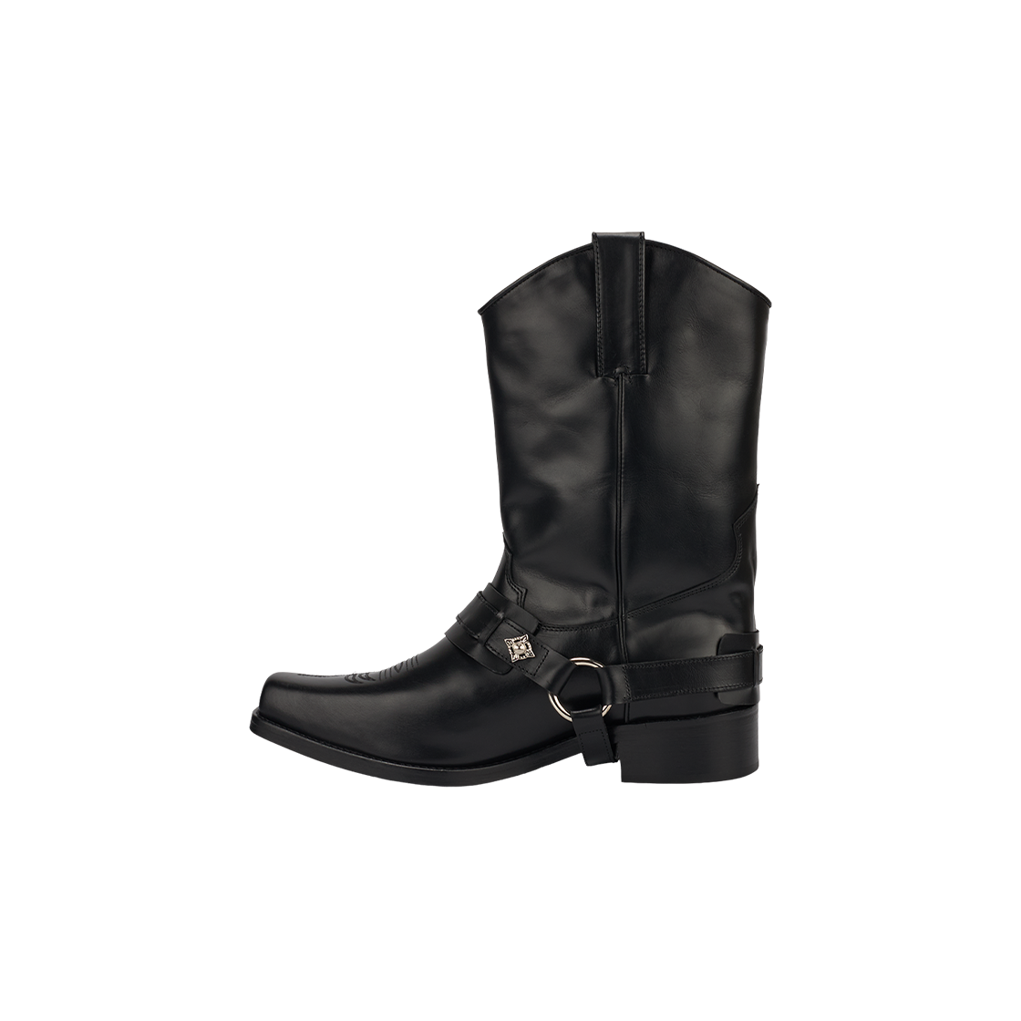 토가 비릴리스 AJ1178 하드 레더 블랙입니다. - 미드 카프 버프 가죽 부츠 - 그래픽 하드웨어 - 사각형 앞코 - 자수 디테일