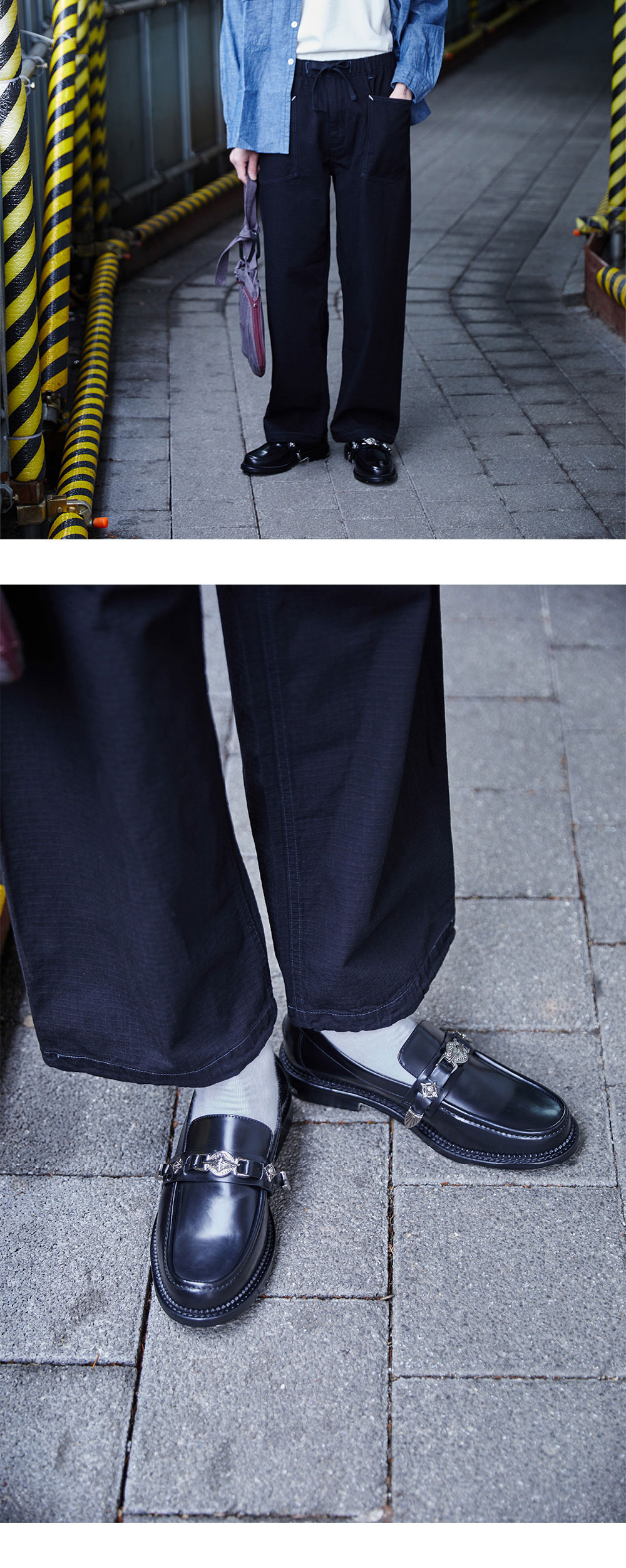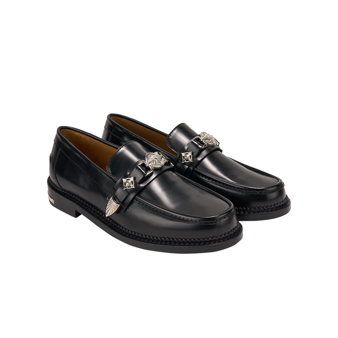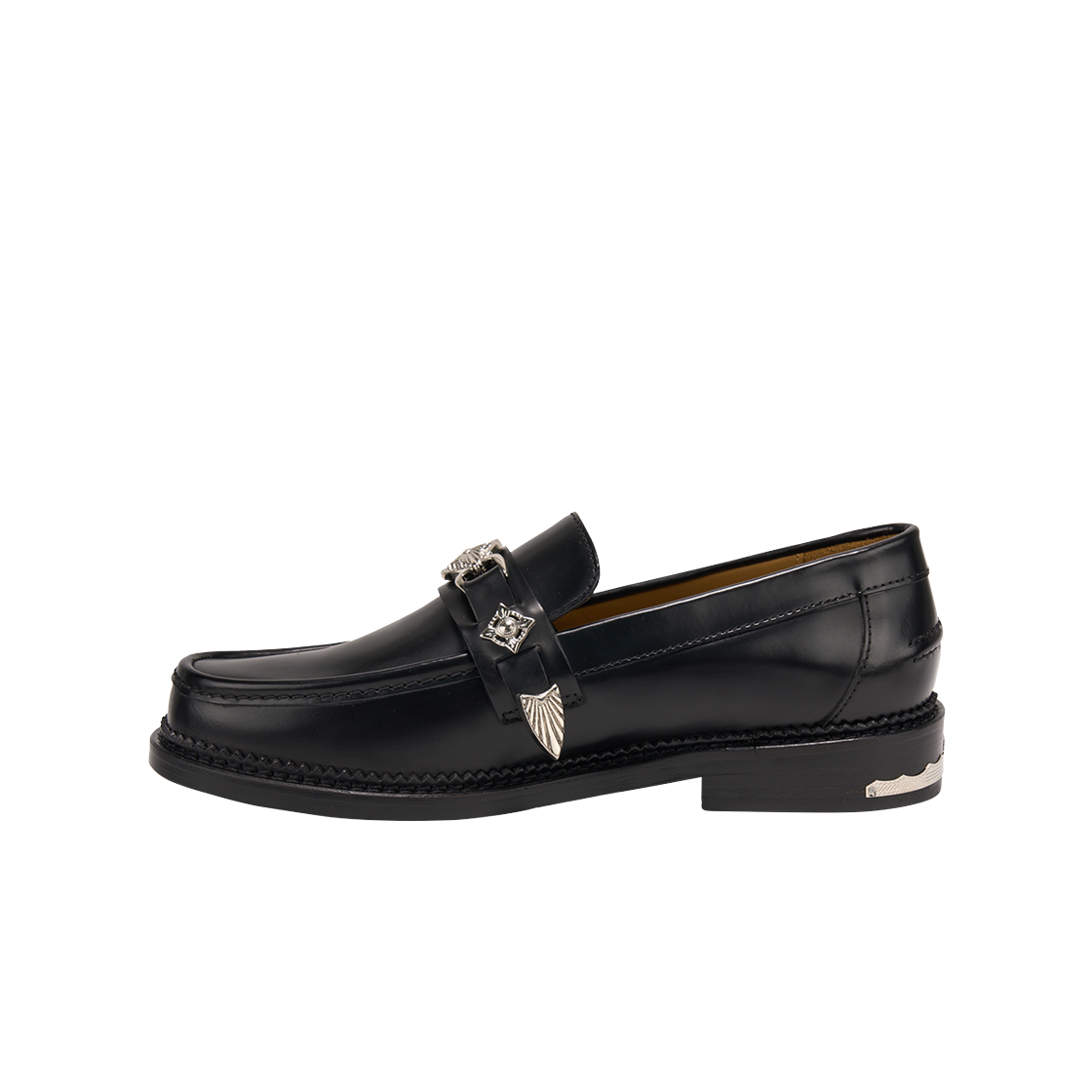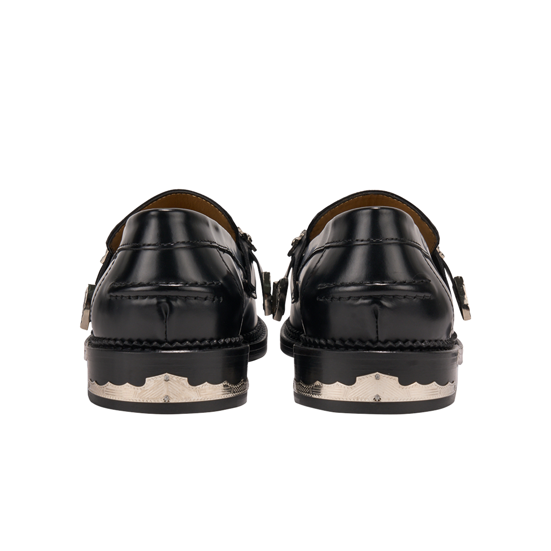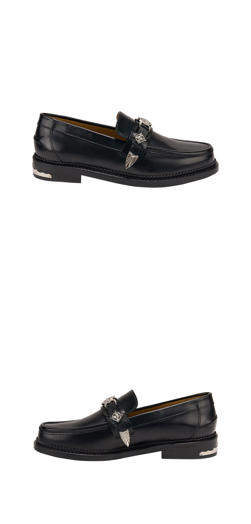 버클 금속 장식으로 존재감을 드러내는 토가의 비릴리스 AJ826 폴리도입니다. - 윤기가 있는 가죽 - 메탈 스터즈의 호스 비트조 벨트 부착 - 메탈 플레이트 디테일의 힐 - 힐 3cm