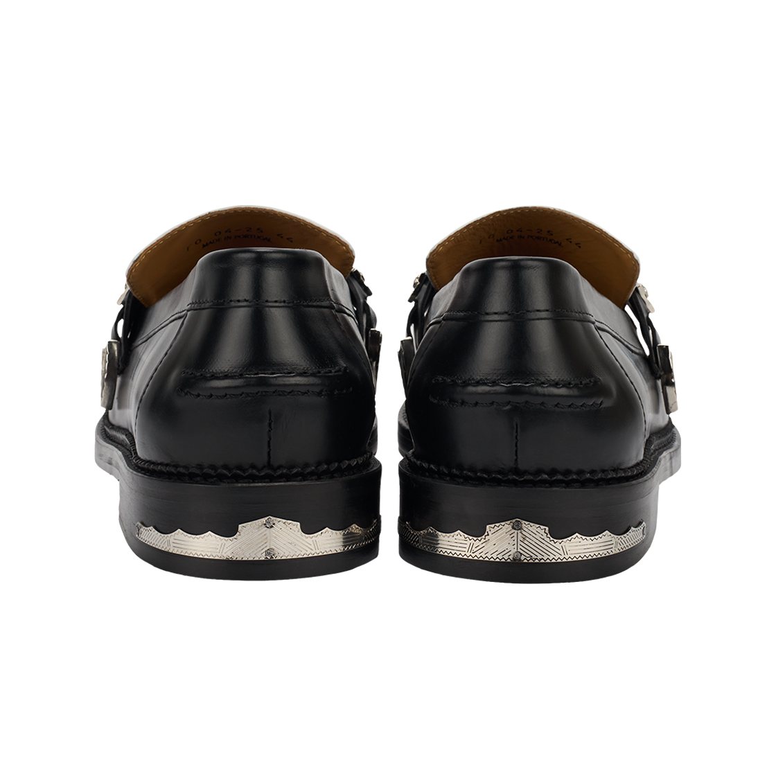 버클 금속 장식으로 존재감을 드러내는 토가의 비릴리스 AJ826 폴리도입니다. - 윤기가 있는 가죽 - 메탈 스터즈의 호스 비트조 벨트 부착 - 메탈 플레이트 디테일의 힐 - 힐 3cm