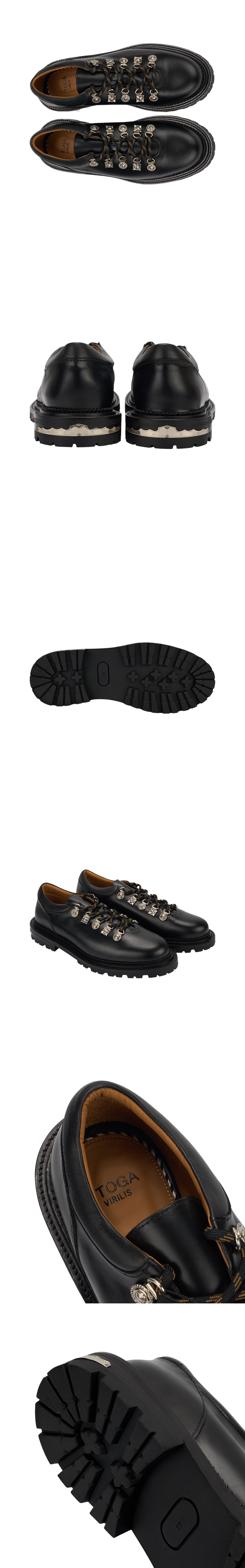시그니처 메탈 하드웨어 디테일이 돋보이는 토가 비릴리스 AJ1425 입니다. - 레이스 업 클로저 - 실버 톤 하드웨어 - 메탈 플레이트 디테일의 힐
