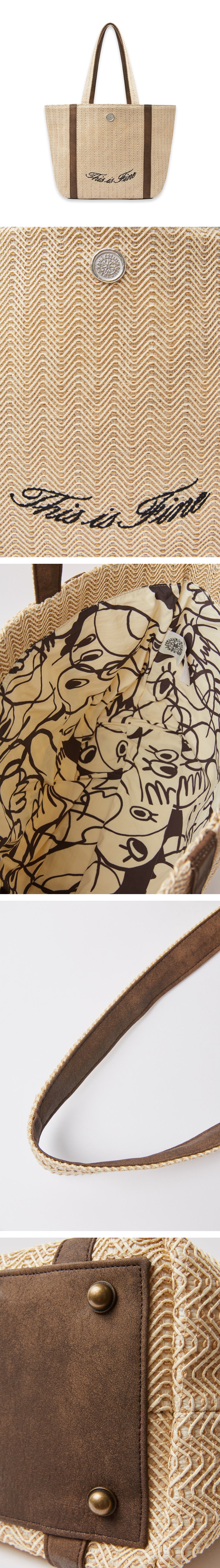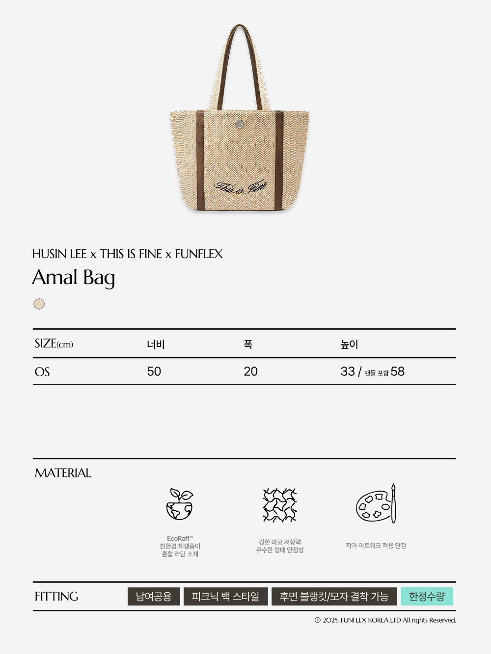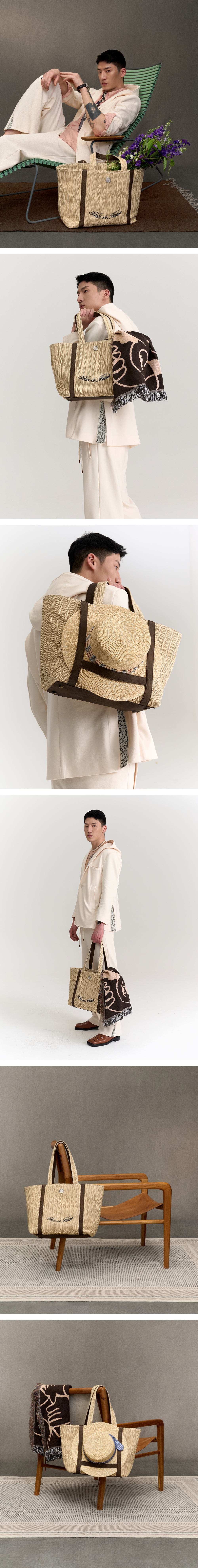 햇살이 머무는 오후, 당신의 어깨에 여유 한 바구니. EcoRaff™ 소재와 이후신 작가의 작품으로 완성한 감각적인 여름의 순간. ✓ EcoRaff™ : 재생 종이 혼합 라탄 소재로 구현한 지속 가능한 여름 감성 ✓ 내부 안감은 아티스트 이후신의 일러스트로 완성 ✓ 가볍고 구조감 있는 실루엣으로 데일리 & 바캉스룩 모두에 적합