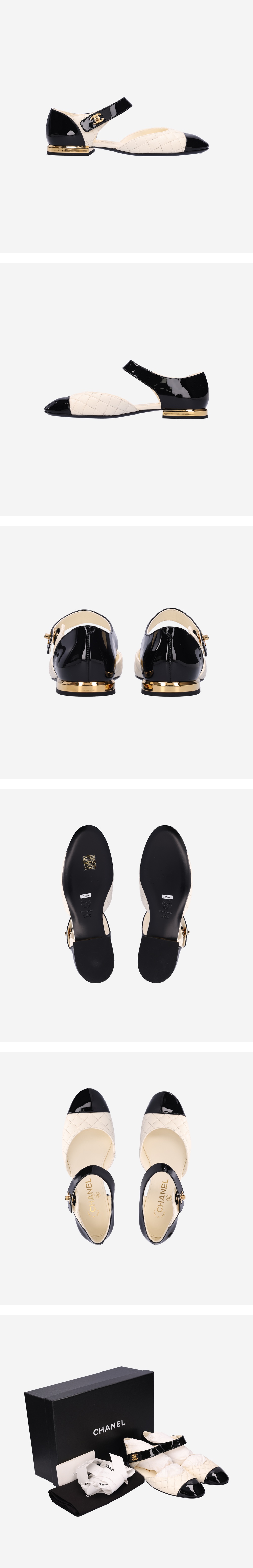 샤넬 G38441 발레리나 플랫 램스킨 페이던트 아이보리 블랙 금장 36.5