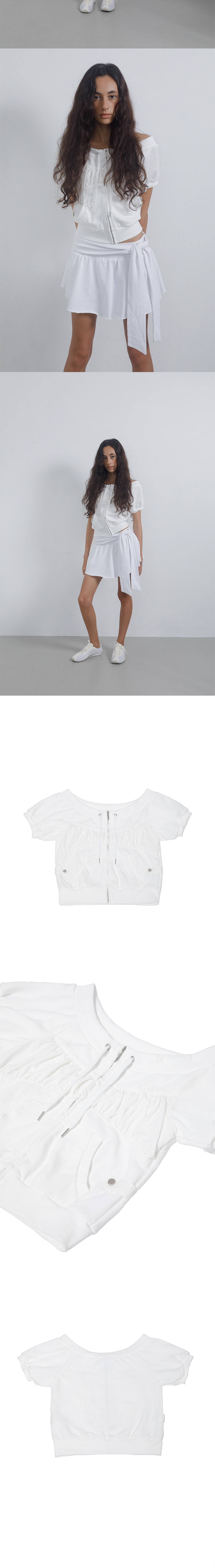 SHELL 1 COTTON 100% SHELL 2 COTTON 65% NYLON 35% 총장 41cm, 어깨 32.5cm, 가슴 42cm, 소매 19cm, 밑단 38.5cm * 상세 사이즈는 단면 기준이며, 측정 방법과 위치에 따라 1~3cm 오차 범위가 생길 수 있습니다. * 모델(165cm) 피팅 사이즈 / 원사이즈 프론트 셔링 원단 배색 포인트 사이드 비조 장식 디테일 캥거루 포켓