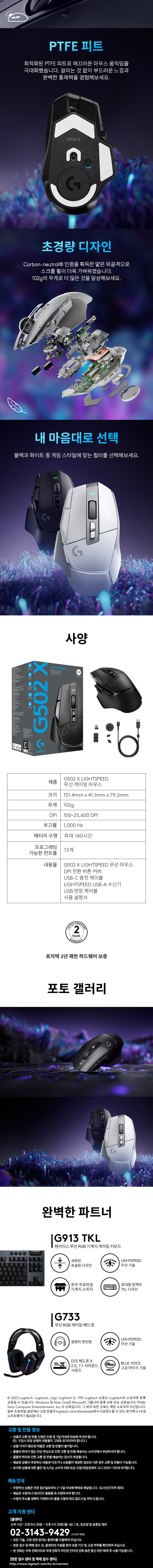 로지텍코리아 공식 G502 x LIGHTSPEED 무선 게이밍 마우스 화이트