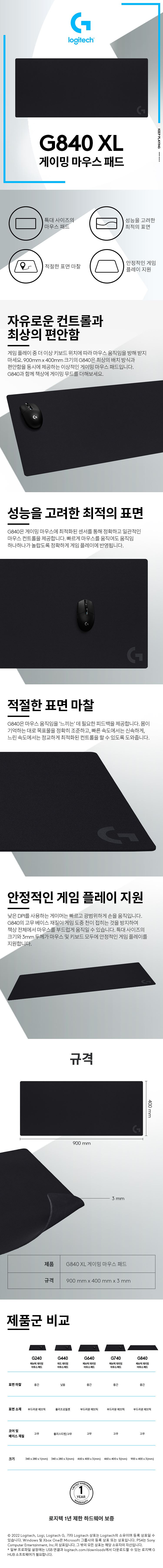 로지텍코리아 공식 G840 XL 블랙 게이밍 마우스 패드