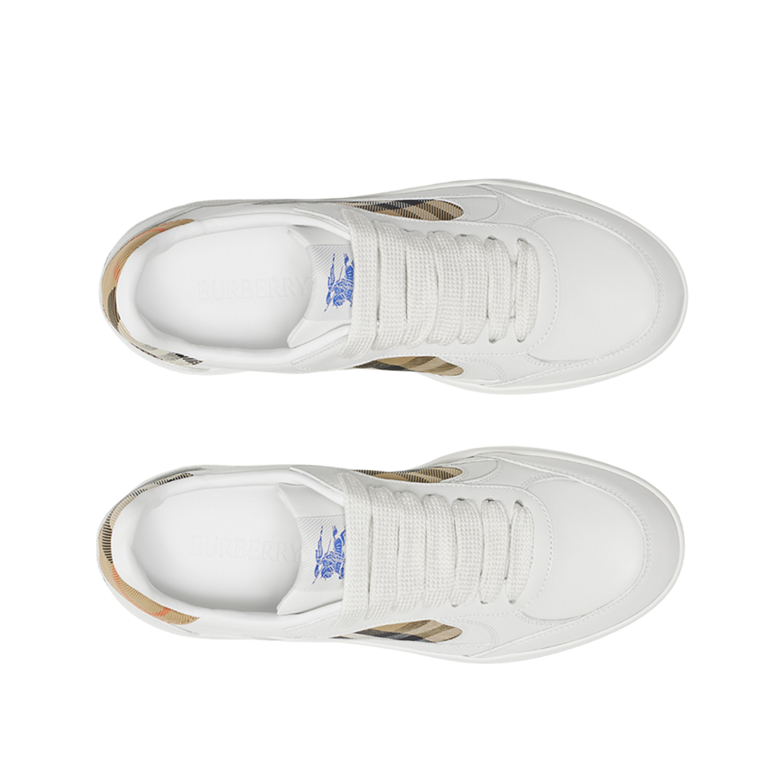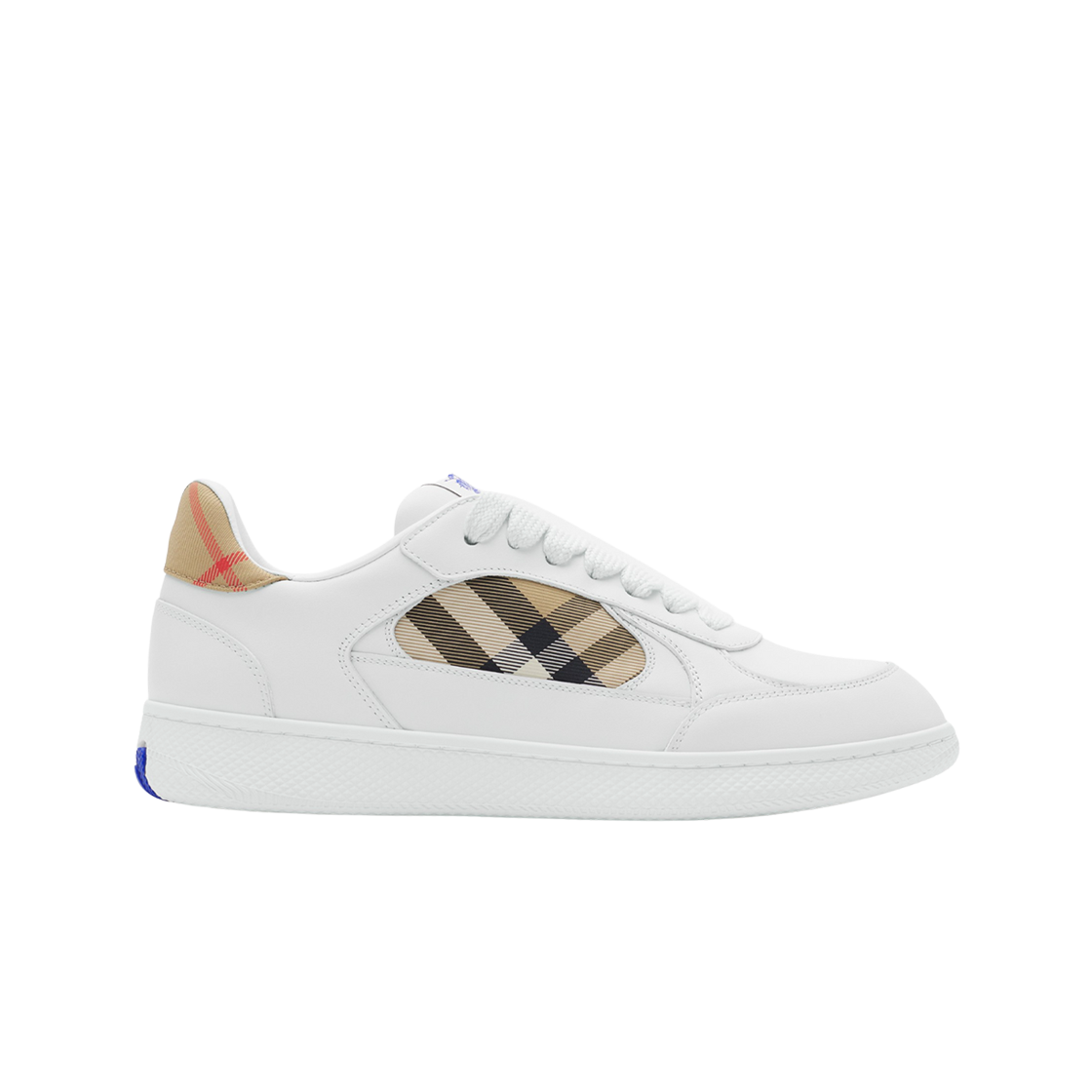 (W) Burberry Leather Check Terrace Sneakers White Sand