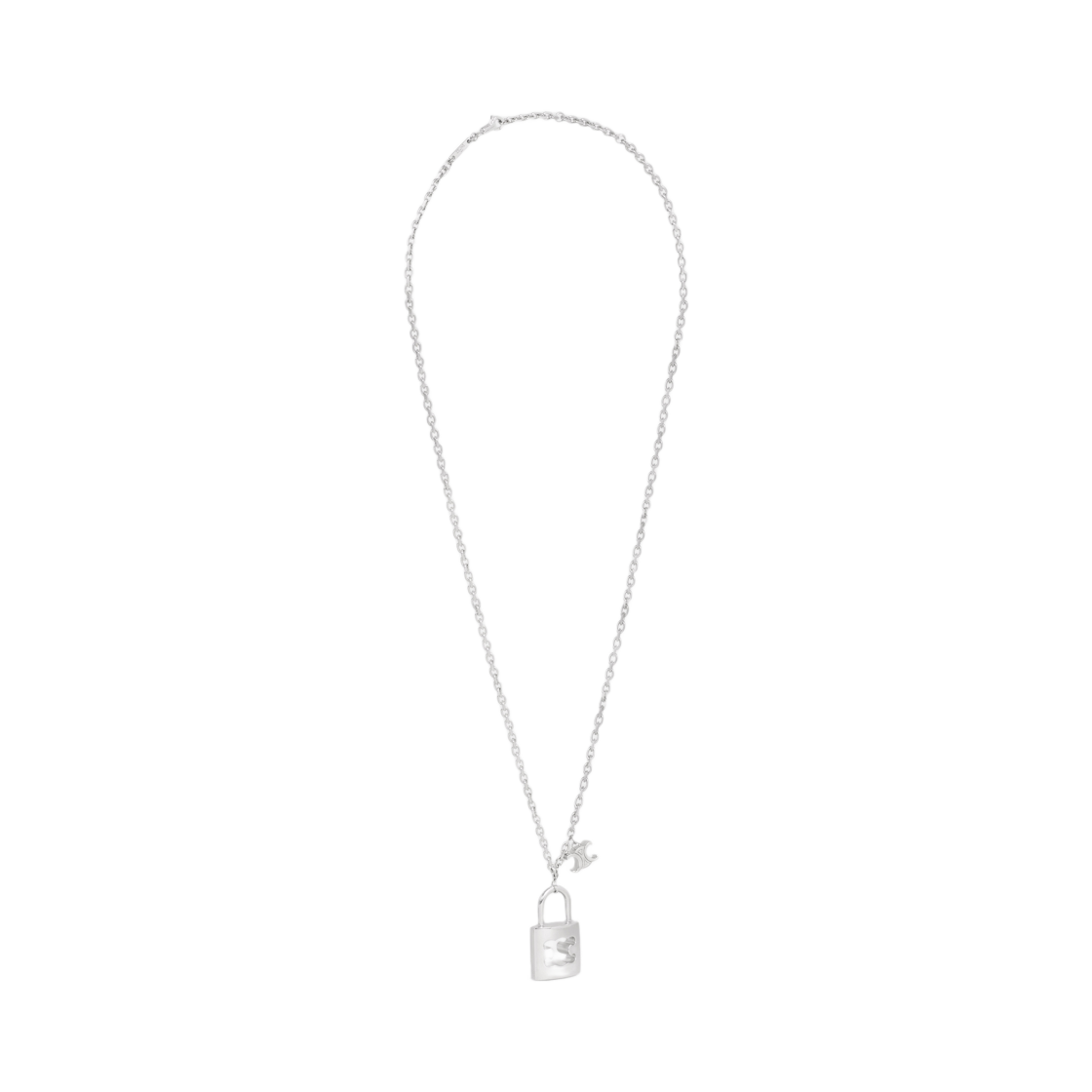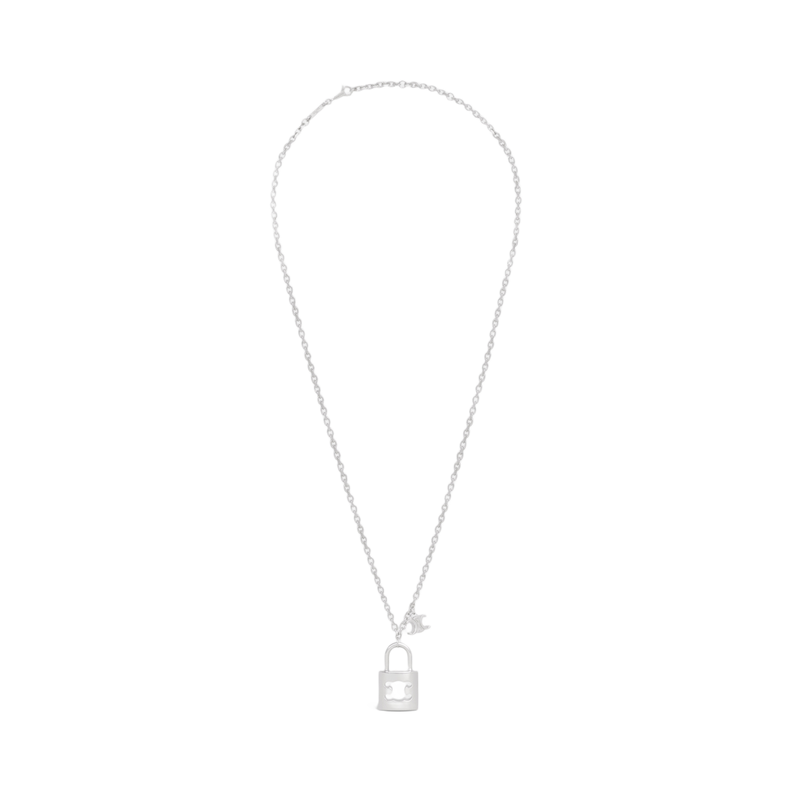 (W) Celine Triomphe Lock Large Necklace in Brass with Rhodium Finish Silver