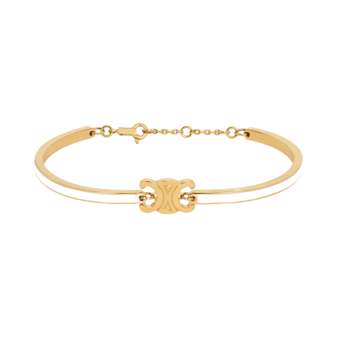 (W) Celine Triomphe Articulated Bracelet in Enamel and Brass with Gold Finish Gold Ivory