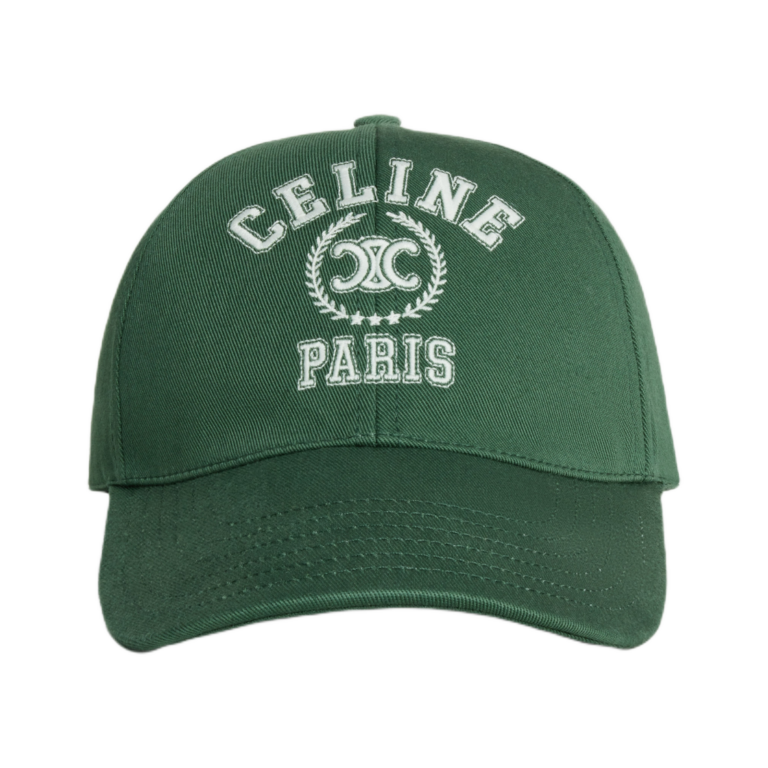 (W) 셀린느 유니버시티 베이스볼 캡 개버딘 코튼 워시드 그린 컬리지 오프 화이트