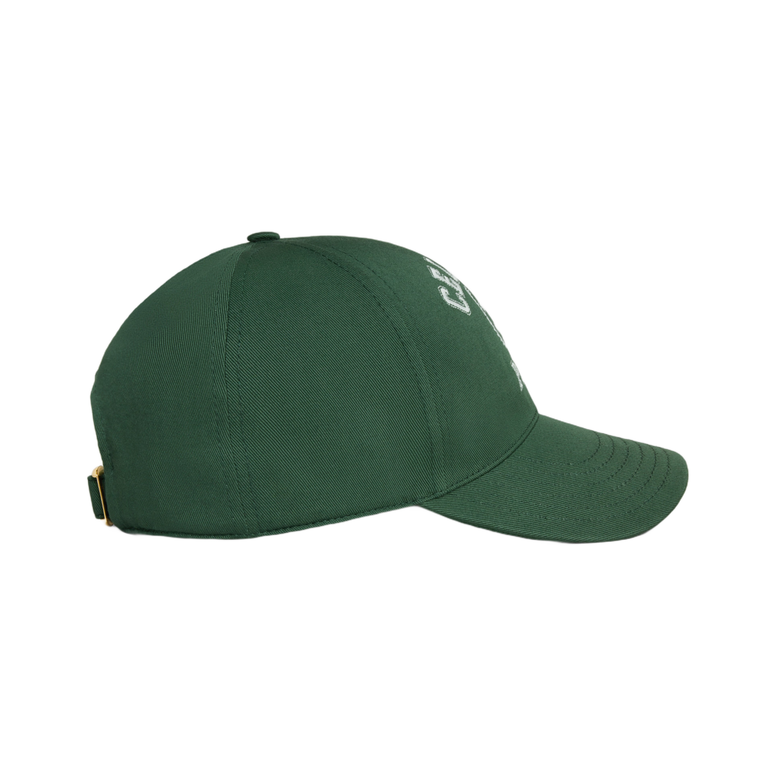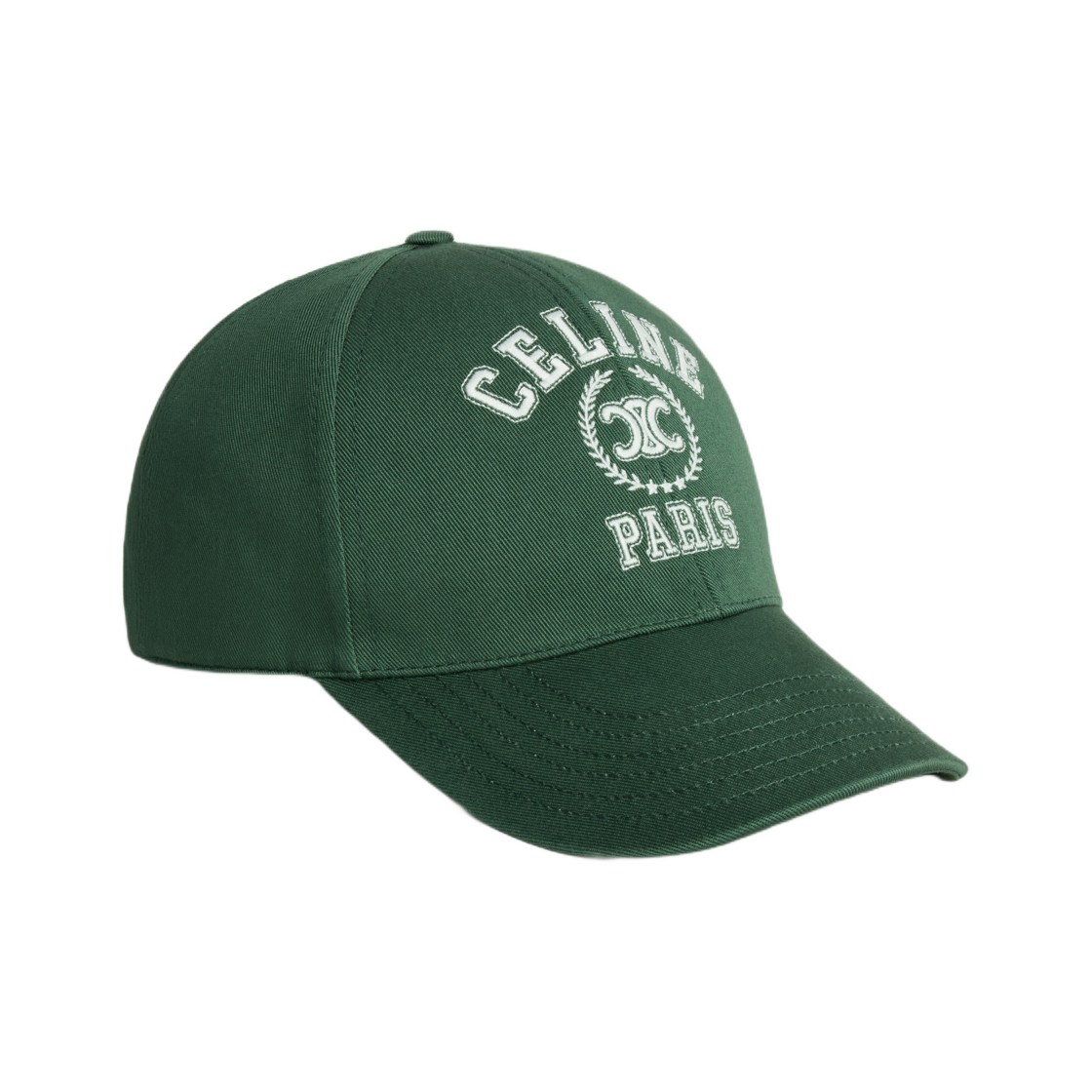 (W) Celine University Baseball Cap in Gabardine Cotton Washed Green College Off White