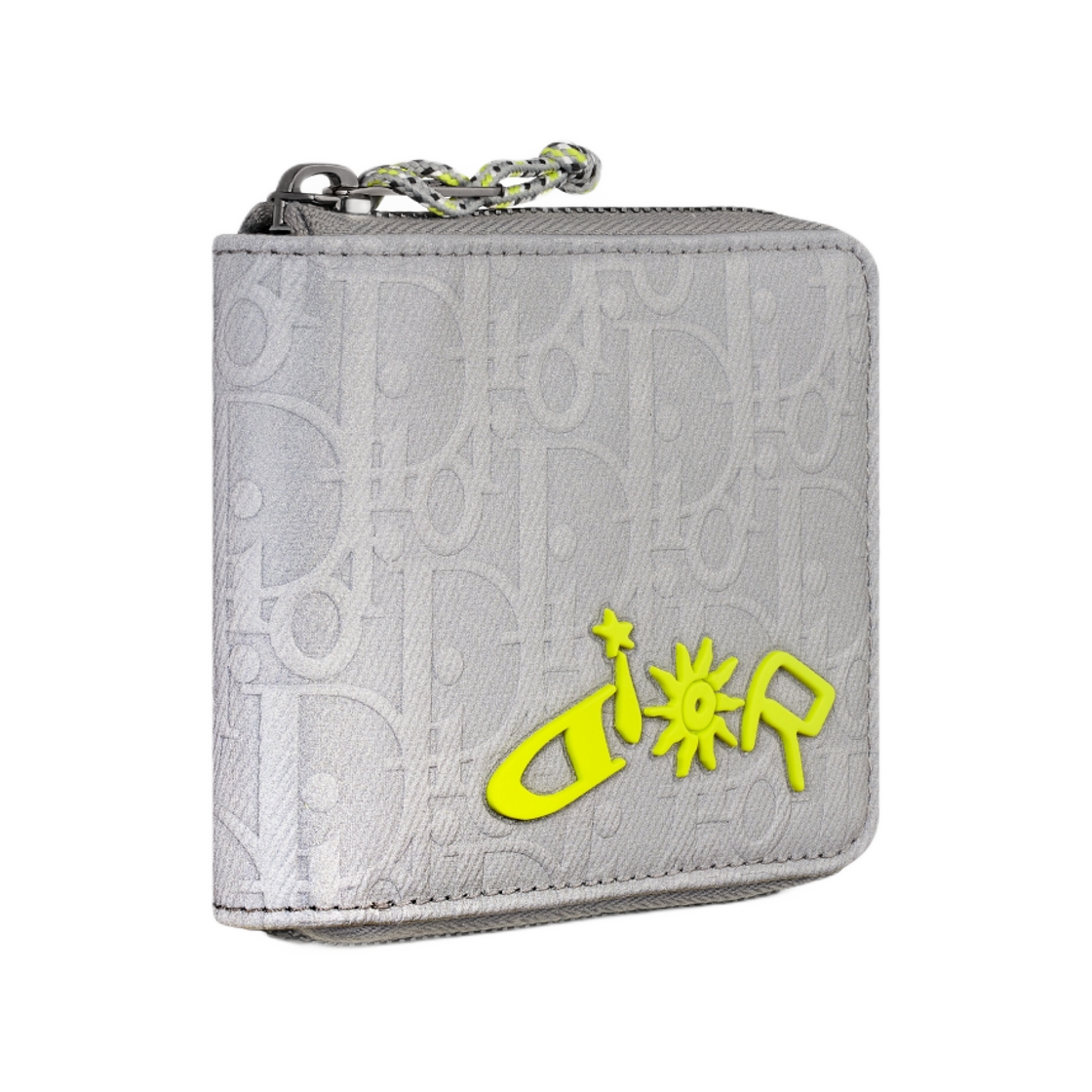 디올 x 루이스 해밀턴 지퍼 월렛 디올 오블리크 리플렉티브 나일론 실버 리플렉티브 나일론