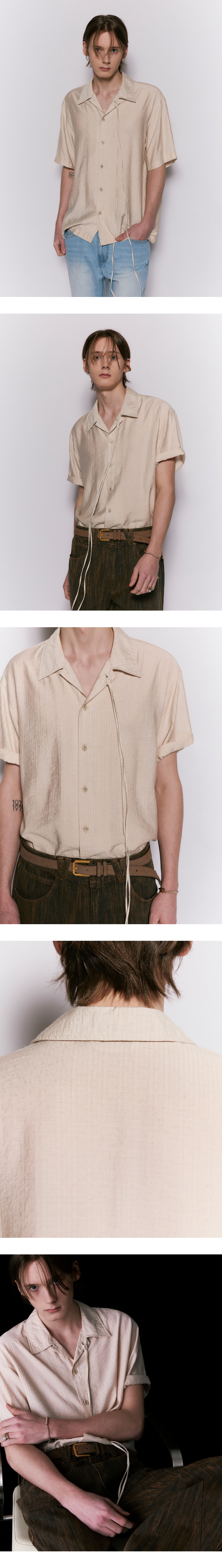 WESLEY HYUSTON Heritage Stripe Linen Half Shirt Light Beige