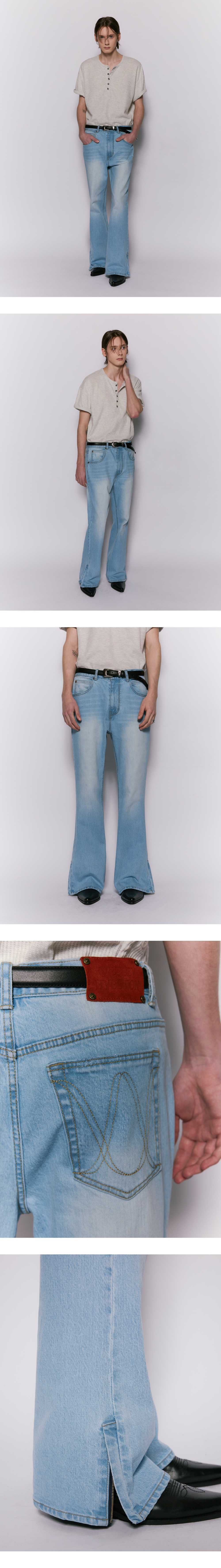 웨슬리휴스턴 슬릭 지퍼 디테일 부츠컷 데님 팬츠 라이트블루