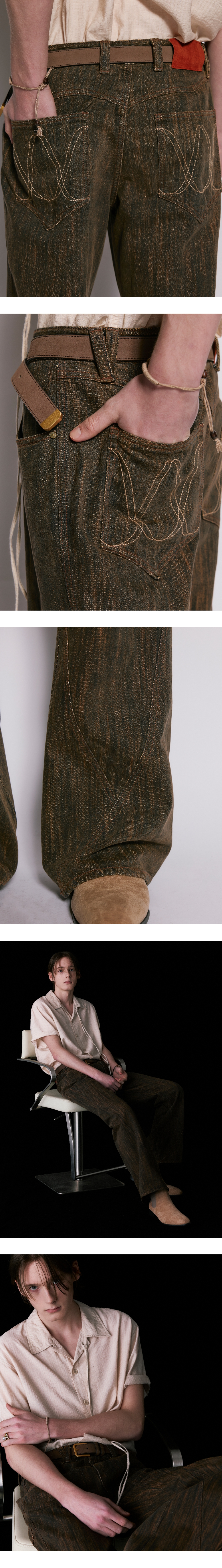 WESLEY HYUSTON Harsh Dyeing Slub Denim Pants Brown
