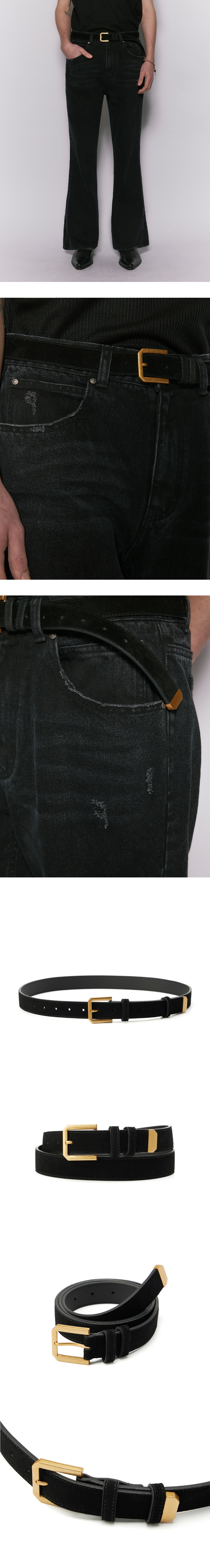 웨슬리휴스턴 카우하이드 스웨이드 골드버클 벨트 블랙