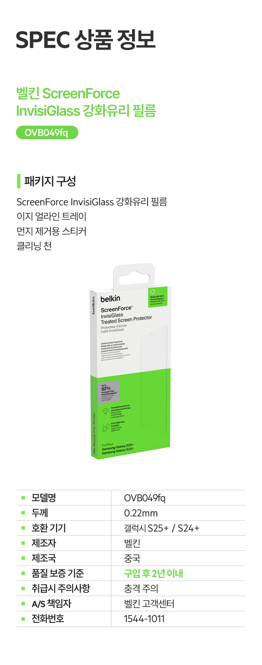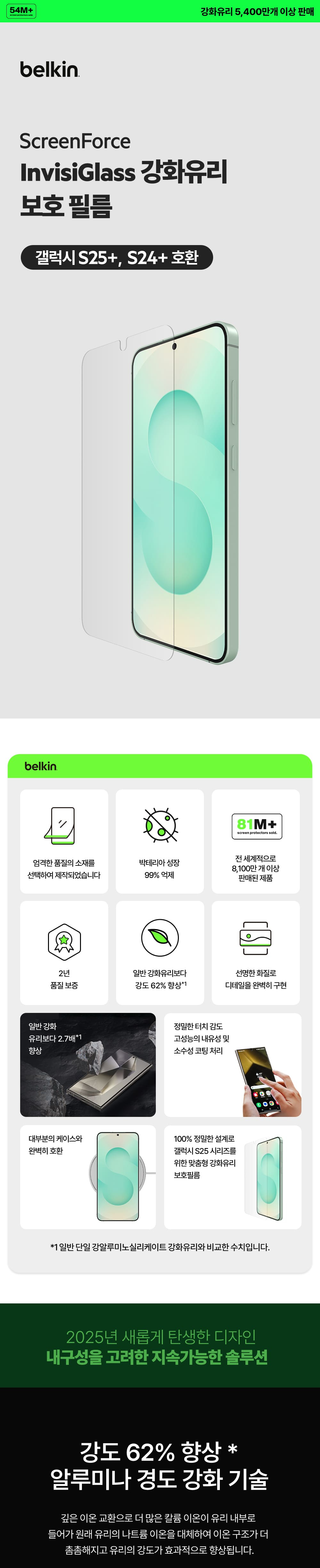 벨킨 갤럭시S25 플러스 인비지 강화유리 액정보호 필름 OVB049fq