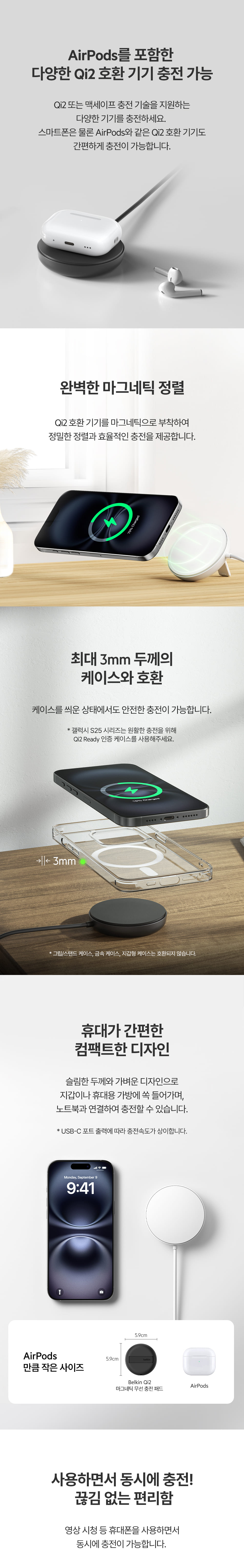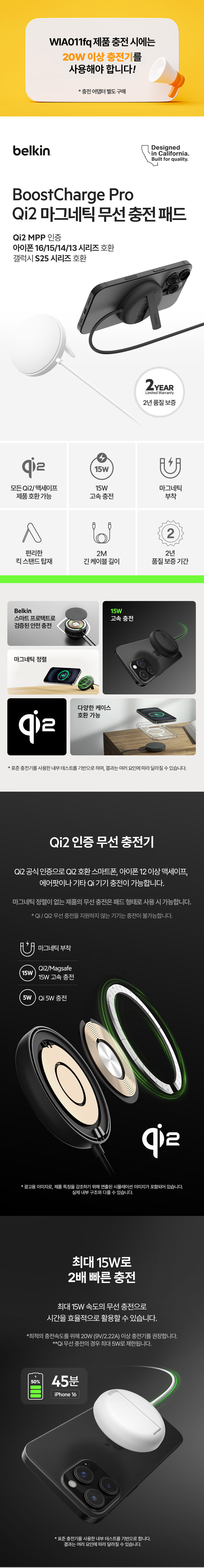 벨킨 15W Qi2 고속 무선 충전 패드 스탠드 WIA011fq 블랙