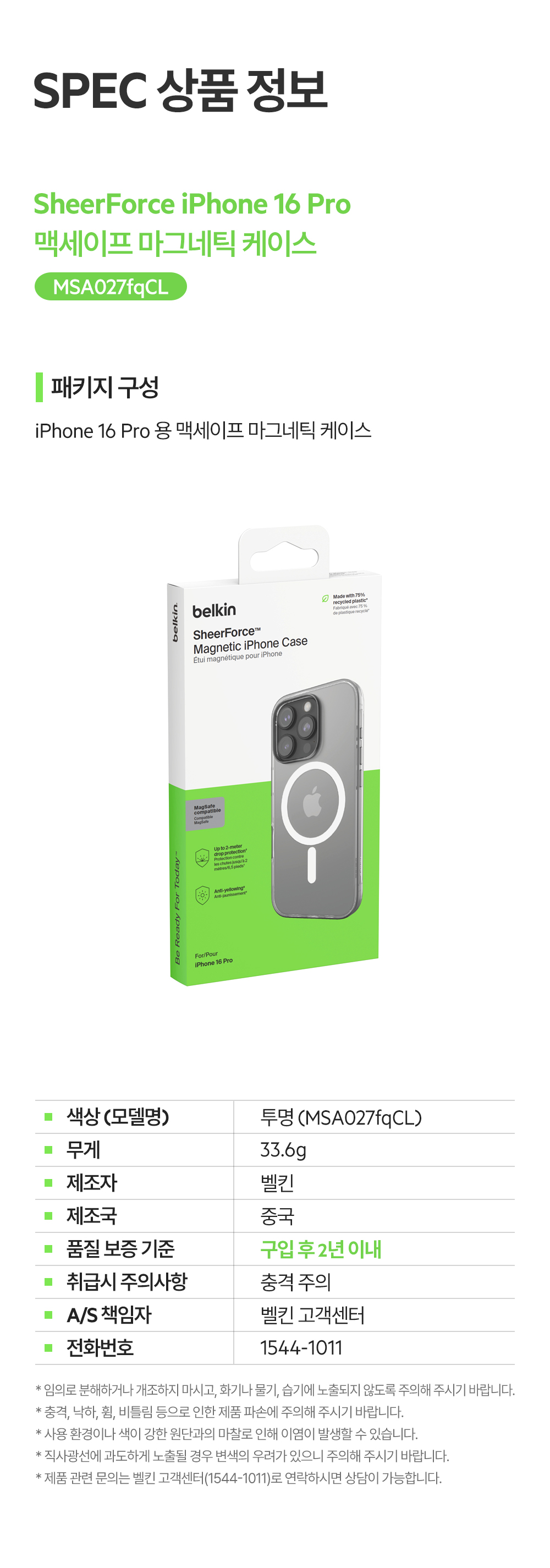 벨킨 아이폰16프로 맥세이프 마그네틱 케이스 MSA027fq