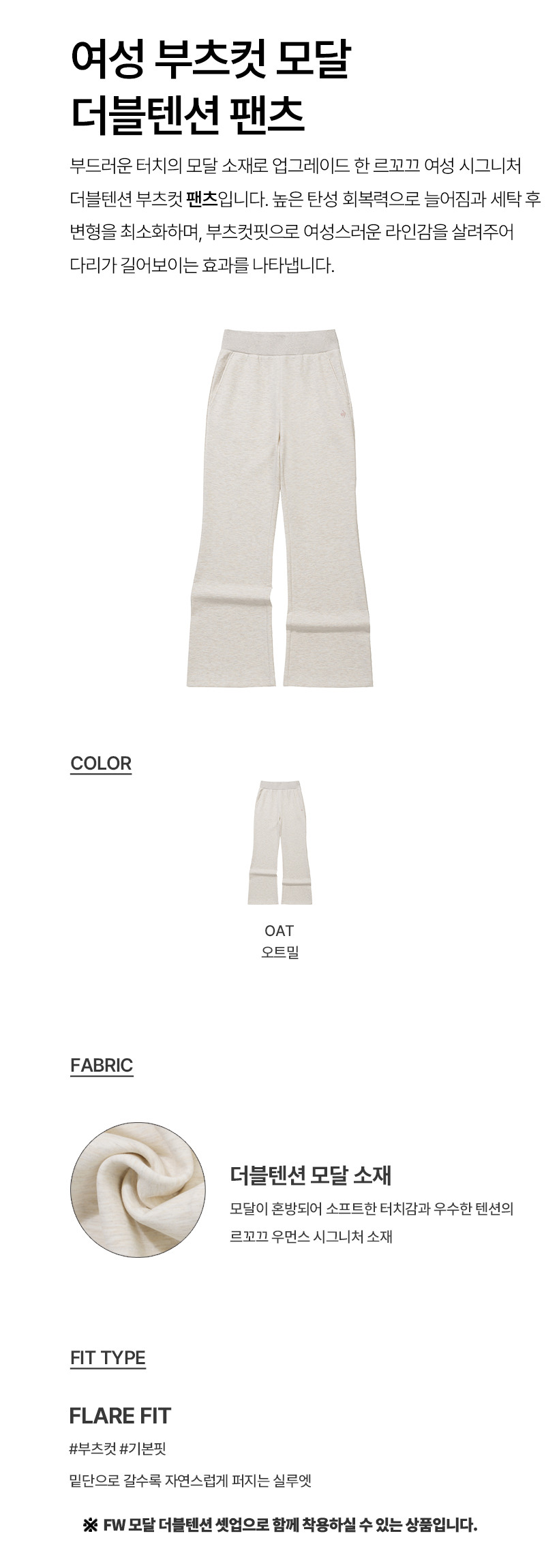 르꼬끄 스포르티브 여성 부츠컷 모달 더블텐션 팬츠 - 블랙(QQ322OFP82)