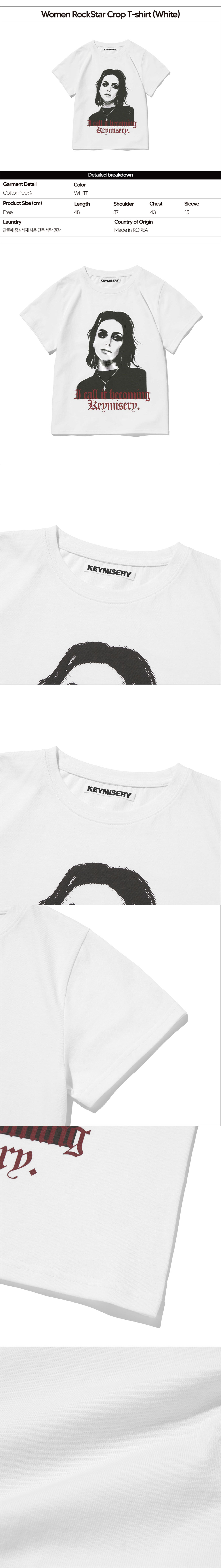 키미저리 우먼 락스타 크롭 티셔츠 - 화이트