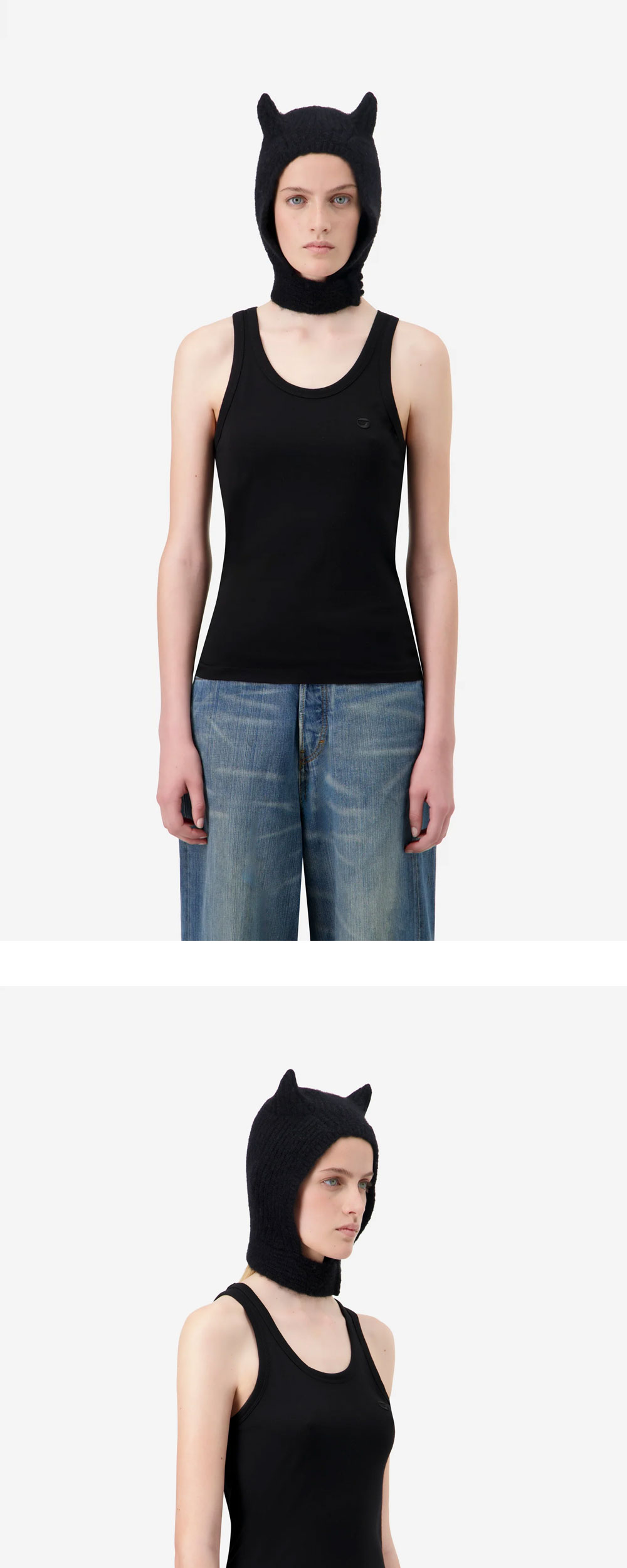클래식한 비니에 유쾌한 변주를 더한 코페르니 니트 혼 비니 입니다. - 뾰족한 두 개의 뿔 장식 - 다크 판타지와 반전 매력에 대한 오마주 - 안정적인 형태와 보온성을 제공하는 골지 짜임 - 부드러운 울 혼방 소재