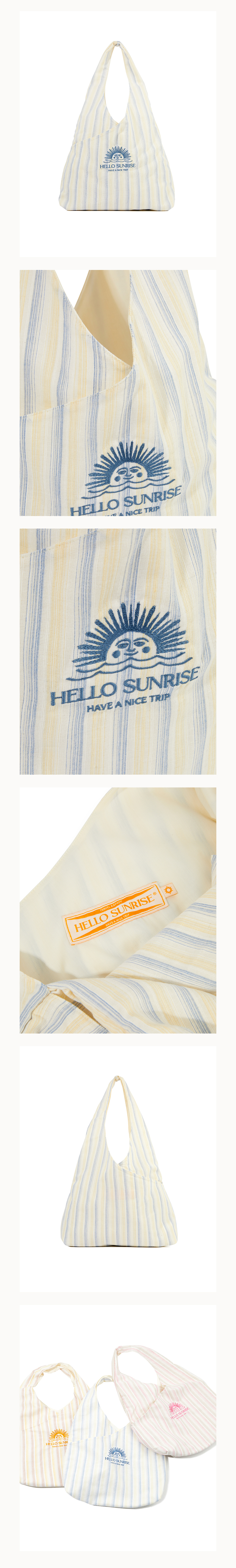 헬로선라이즈 오리지널 로고 그래픽이 자수로 들어간 비키니 백입니다. - 전면에 OG 태양 심볼 자수 디테일 - 3개의 수납 공간으로 구성되어 소지품을 깔끔하게 수납 가능 - 데일리로 활용하기 좋은 디자인 * Shell : Cotton 100%