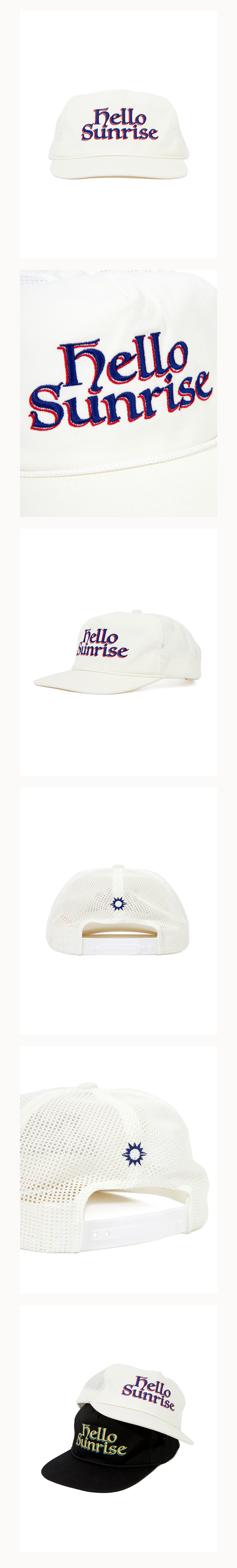 헬로선라이즈 Heritage Logo 그래픽이 자수로 들어간 5패널 캡입니다. - 앞판 Heritage Logo 그래픽 자수처리 - 옆,뒷판 매쉬소재 믹스 사용 - 릴렉스 핏으로 넉넉한 착용감 - 뒷판 Hello Sunrise 심볼 자수 처리 *모자의 챙을 개인적인 취향에 따라 원하시는 각도로 구부려 착용하시길 권장 드립니다. * Cotton 100% / Polyester 100% Made in Korea