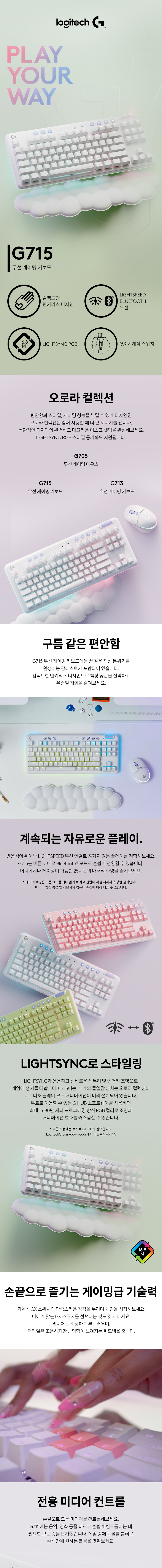 로지텍코리아 공식 G715 오로라 컬렉션 유선 게이밍 키보드 화이트, 적축