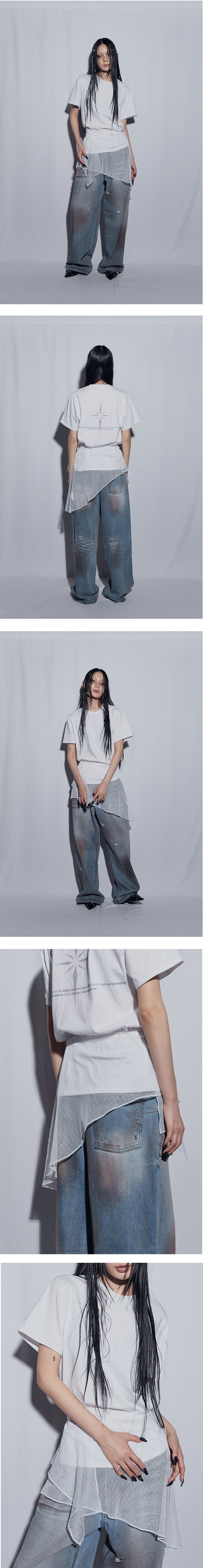 비엘알 애시메트릭 프릴 스트랩 레이어드 스커트 화이트