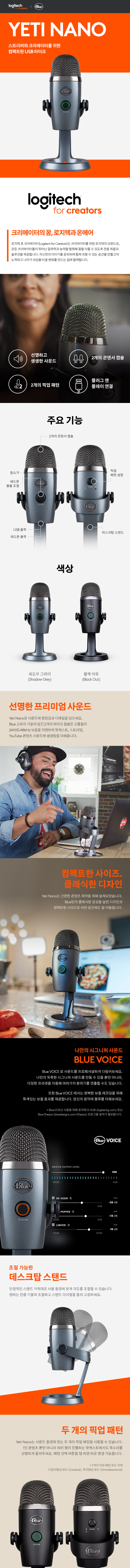 로지텍코리아 공식 BLUE YETI NANO 스트리밍마이크 블랙