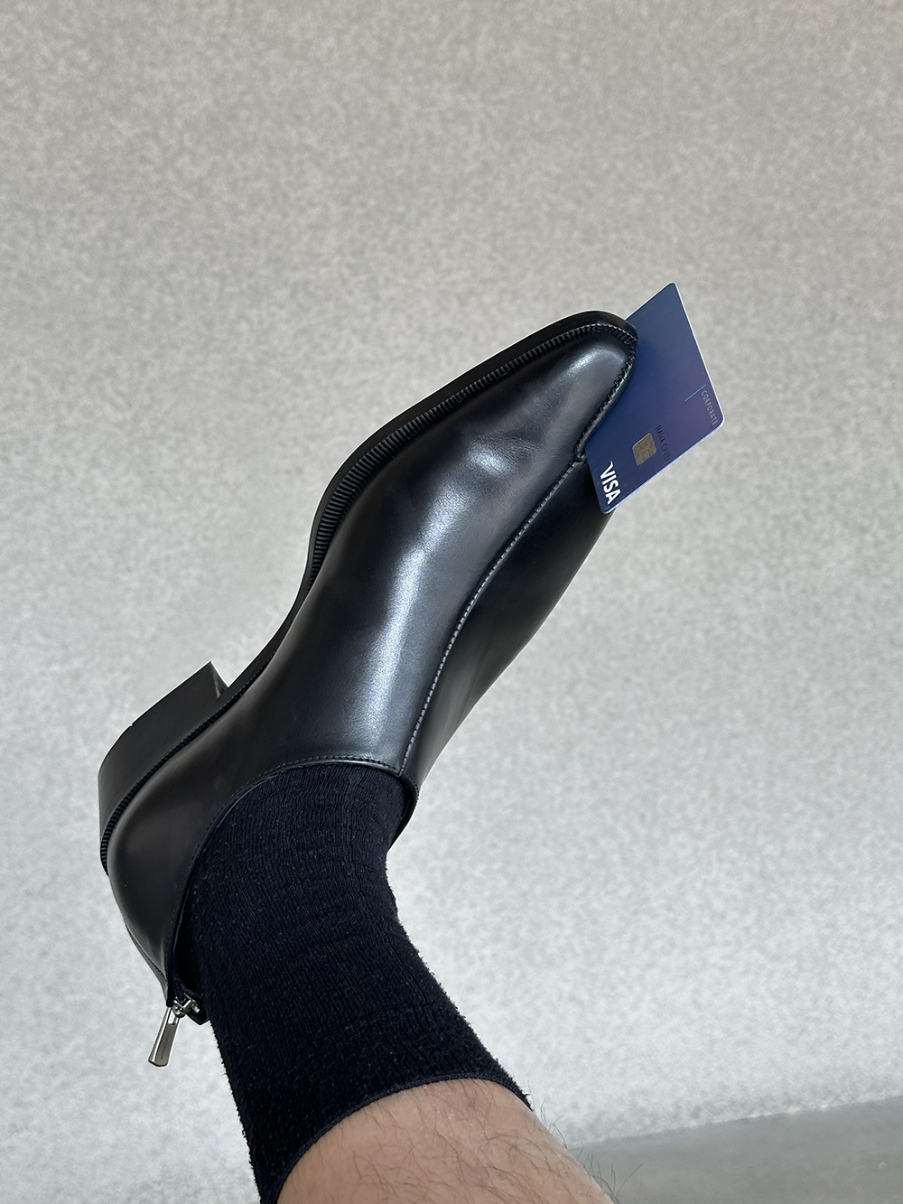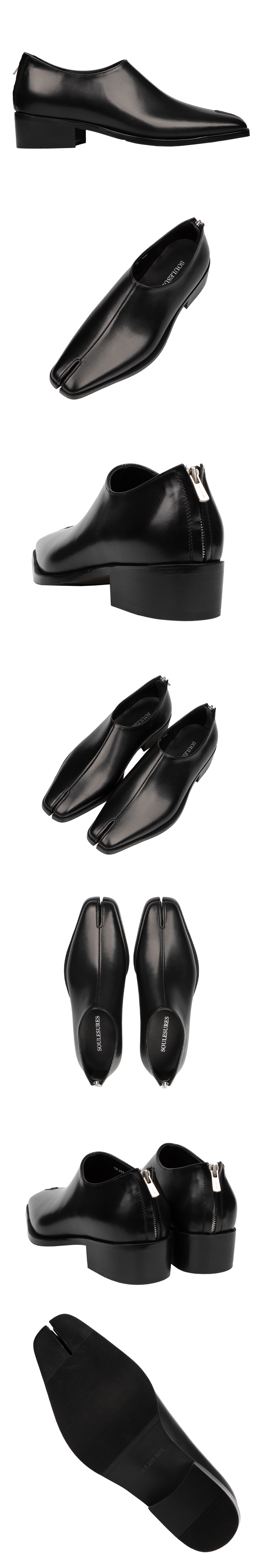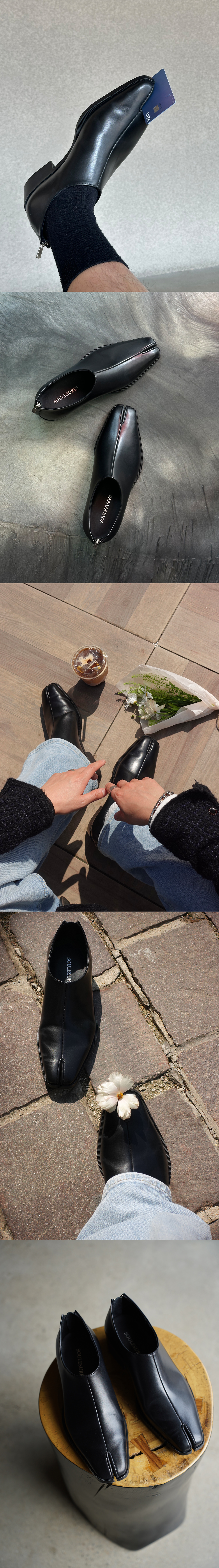 하쿠는 절개선을 최소화한 매끈한 외형과 유려한 타비 라인을 통해 ‘절제된 미학’을 형태로 구현한 로퍼입니다. 부드럽고 은은한 광택을 지닌 킵 가죽으로 제작되어, 신을수록 자연스럽게 길들여집니다. 타비 디테일을 적용했지만, 길이를 길게 설계하여 발가락 걸림이 없으며 뒷꿈치의 히든 지퍼로 편하게 신고 벗을 수 있습니다. *정사이즈 착화 시 길이에 여유가 느껴지는 제품입니다. SIZE : 230-285 mm Heel Height : 약 4.5 cm Material : Cowhide 100 % Color : Black
