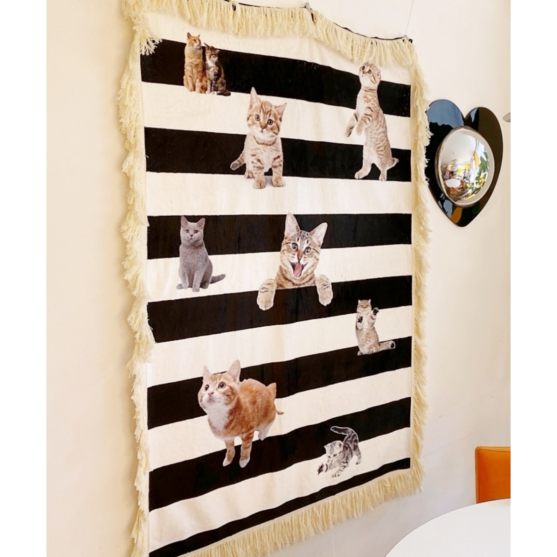 사랑스러운 고양이들과 스트라이프 패턴이 만나 귀여움을 더한 유라이크왓의 블랭킷입니다. 쨍한 컬러감의 공간안에 포인트를 줄 수 있으며, 해변과 공원에서 매트로도 사용이 가능합니다. 150x100cm (테슬 제외사이즈) made in koreaEF 벨보아 극세사 / 양면기모최고급 극세사 면 을 이용해 제작 되었으며, 밍크털과 같은 부드러움을 느끼실 수 있습니다. 제작상품으로 교환과 환불은 불가능하며, 제작기간은 최대 7일이상 소요되기도 합니다. 신중한 구매 부탁드립니다.