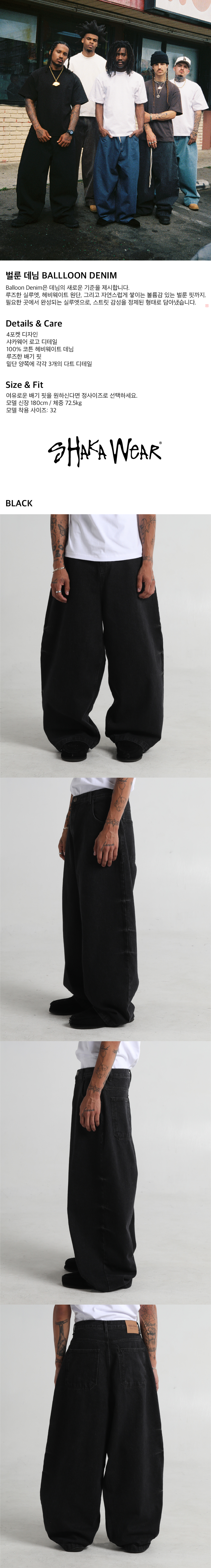 샤카웨어 벌룬 데님 워시드블랙
