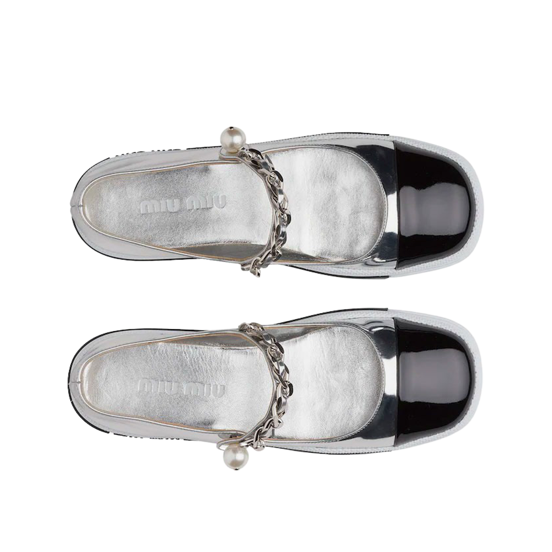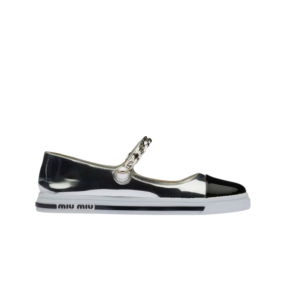 (W) 미우 미우 메탈릭 테크니컬 패브릭 스포티 발레리나 실버 블랙