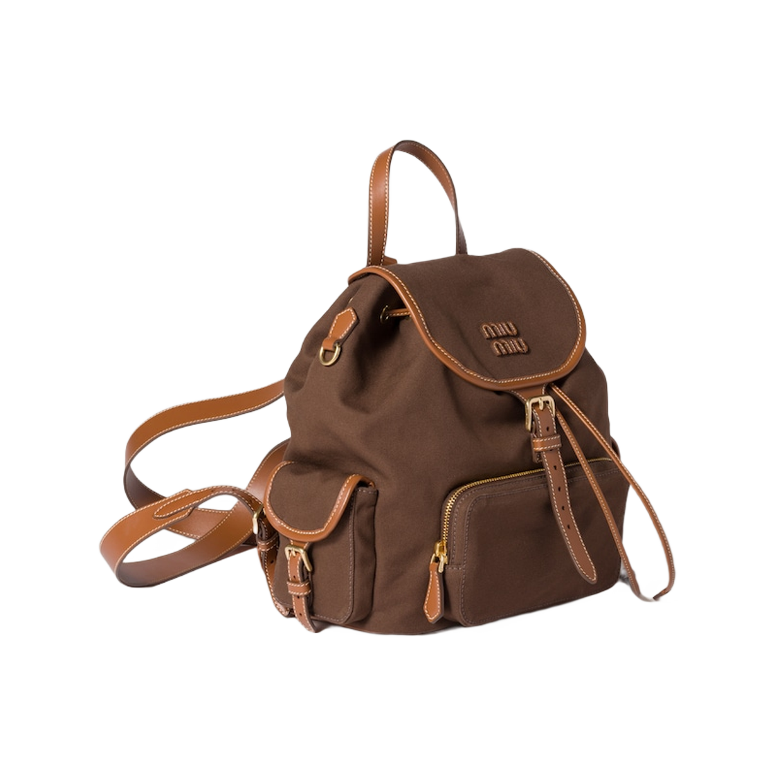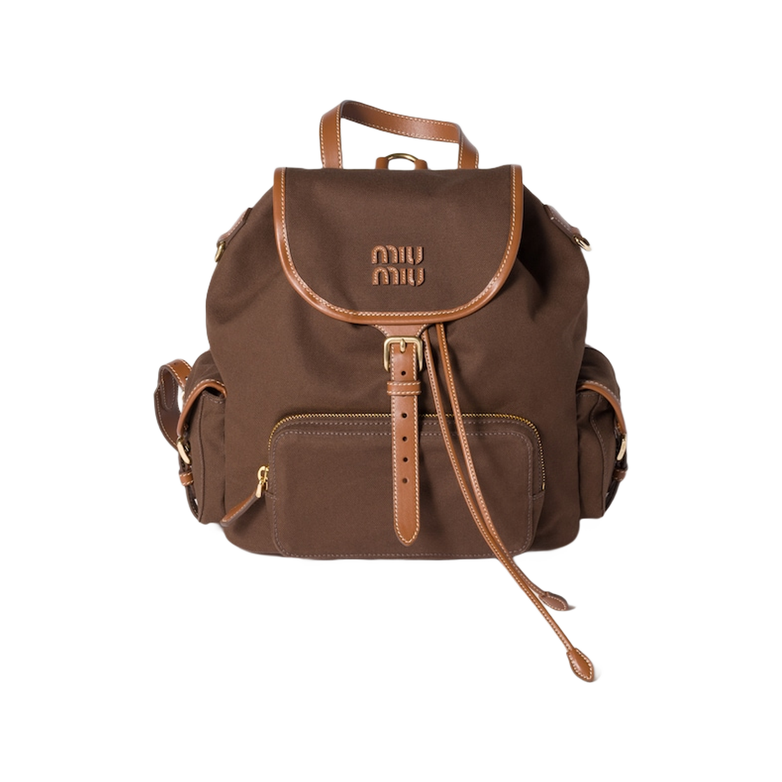미우 미우 캔버스 앤 레더 백팩 코코아 브라운 브랜디
