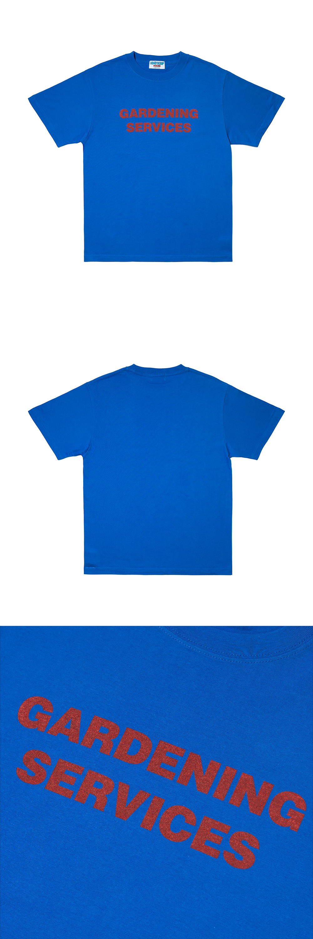 HONEY SCOOP HOUSE GARDENING SERVICES TEE BLUE 100% COTTON SHORT SLEEVE GRAPHIC TEE