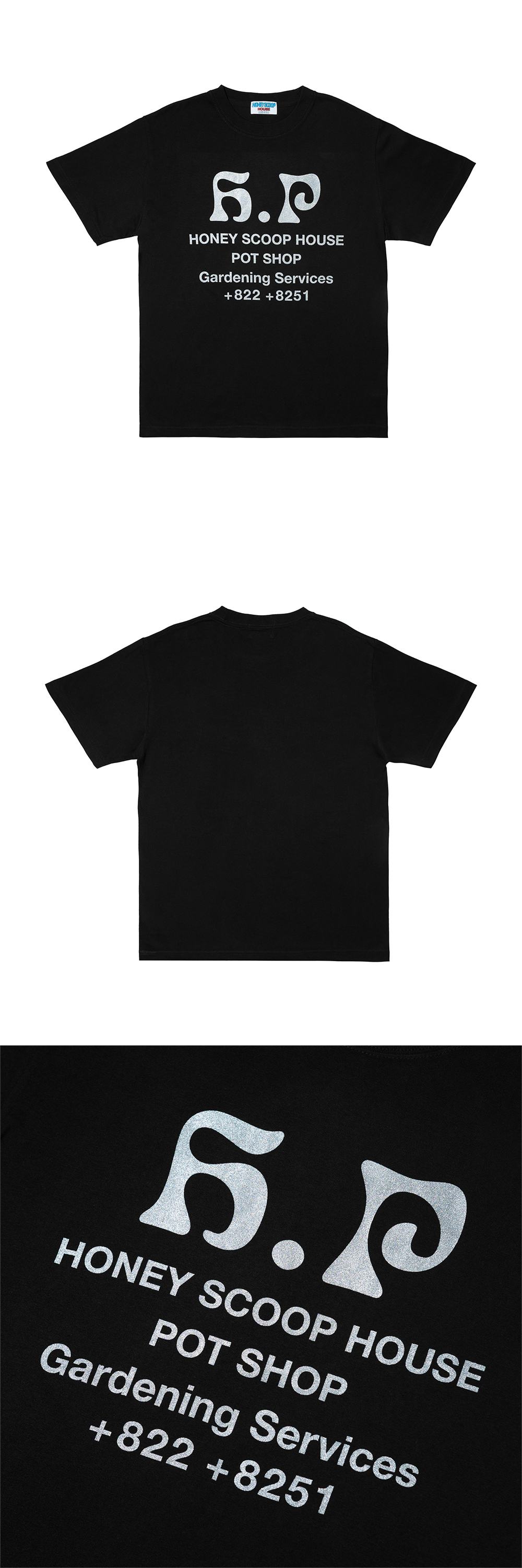 HONEY SCOOP HOUSE X POT SHOP HP LOGO TEE BLACK 100% COTTON SHORT SLEEVE GRAPHIC TEE
