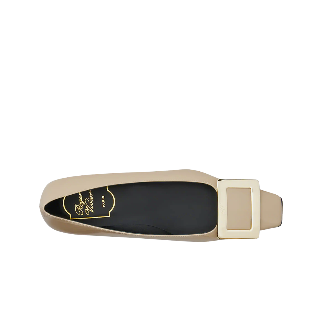 (W) Roger Vivier Belle Vivier Metal Buckle Ballerinas Patent Leather Beige