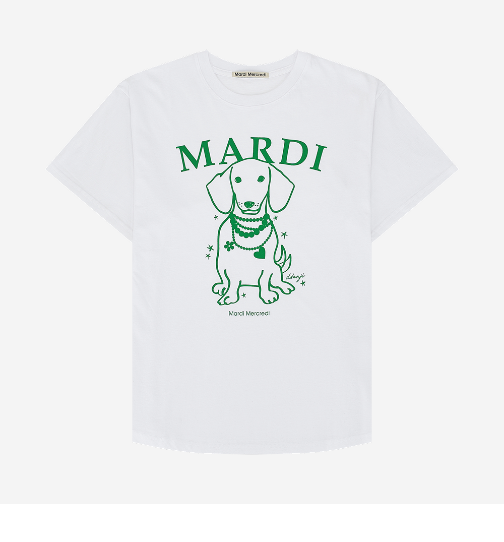 (W) Mardi Mercredi Swing The Tail Ddanji Pearl Necklace T-Shirt White Green