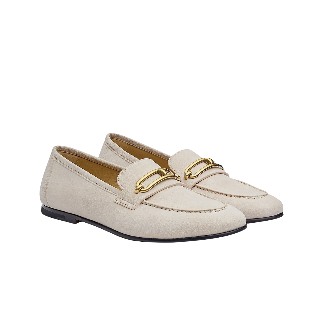 (W) Hermes Colette Loafers Suede Goatskin & Antique Gold Blanc Poros