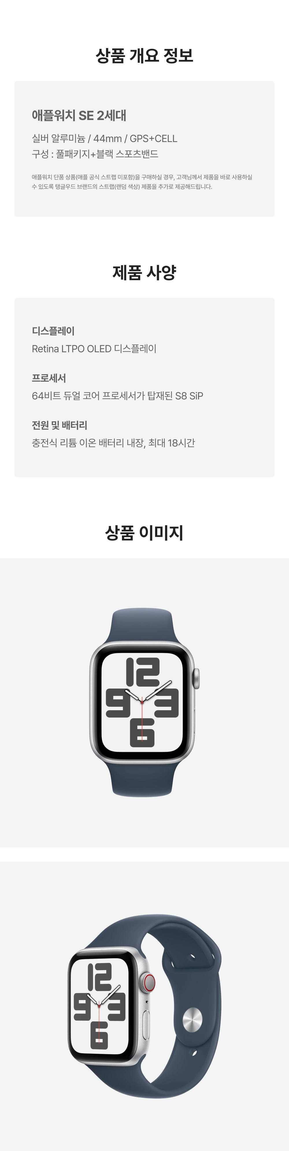 [S등급] 리퍼비시 애플워치 SE 2세대 44mm 셀룰러 실버 알루미늄 케이스 스포츠 밴드 스톰 블루