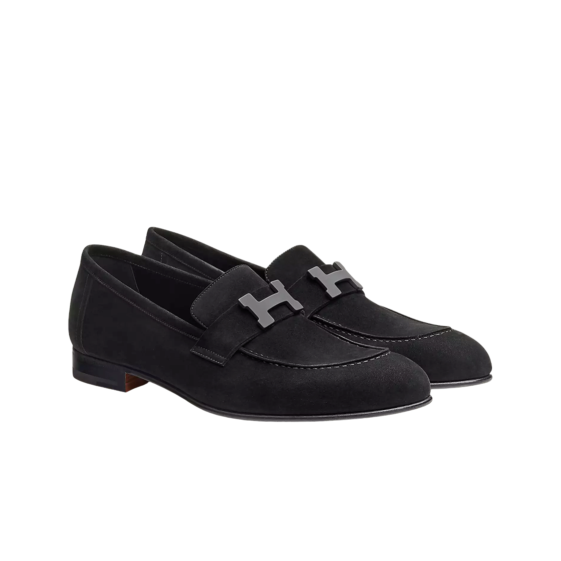 Hermes Paris Loafers Suede Goatskin & Black Metal Noir