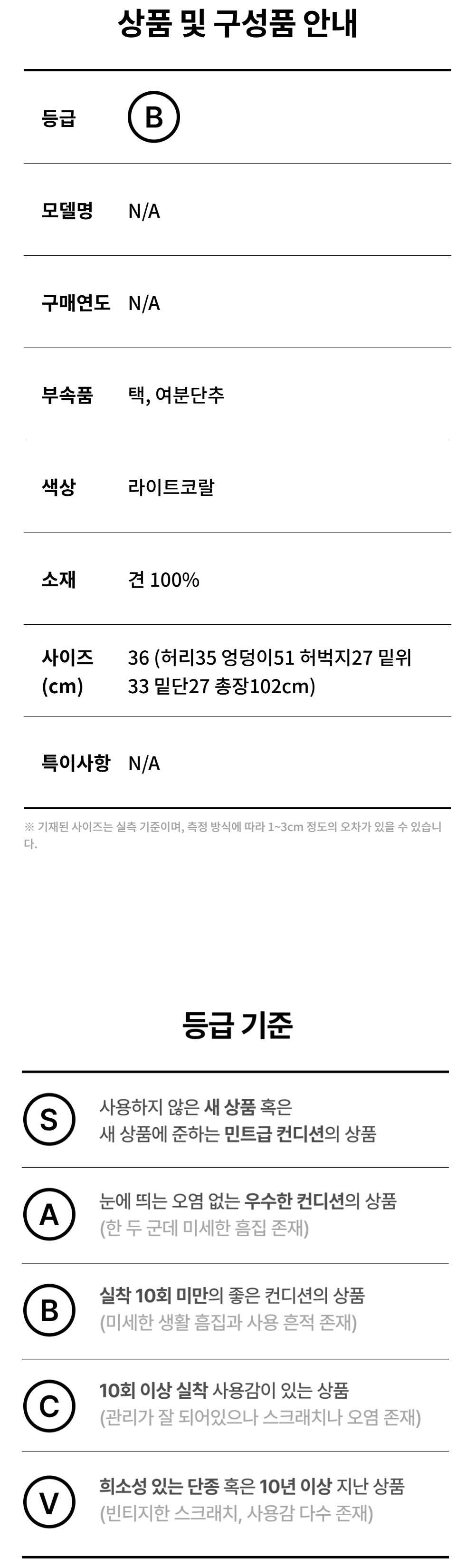 모든 상품(가죽, 의류, 잡화, 슈즈 등)은 사용자의 사용방법과 환경에 따라 변형, 변색이 될 수 있으니 반드시 취급 라벨에 표시된 관리 안내를 따르시길 권장 드립니다. 이는 정도의 차이가 있으며 과도한 체열과 땀, 습기, 빛, 마찰은 제품의 손상 및 변형을 일으킬 수 있으므로 주의하시길 바랍니다.