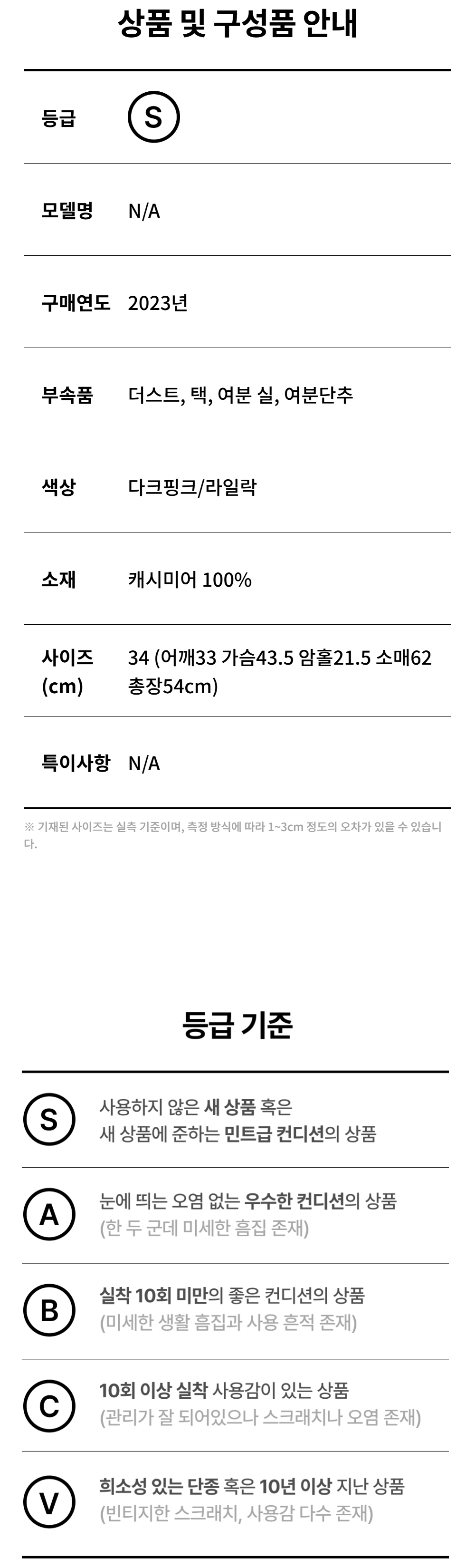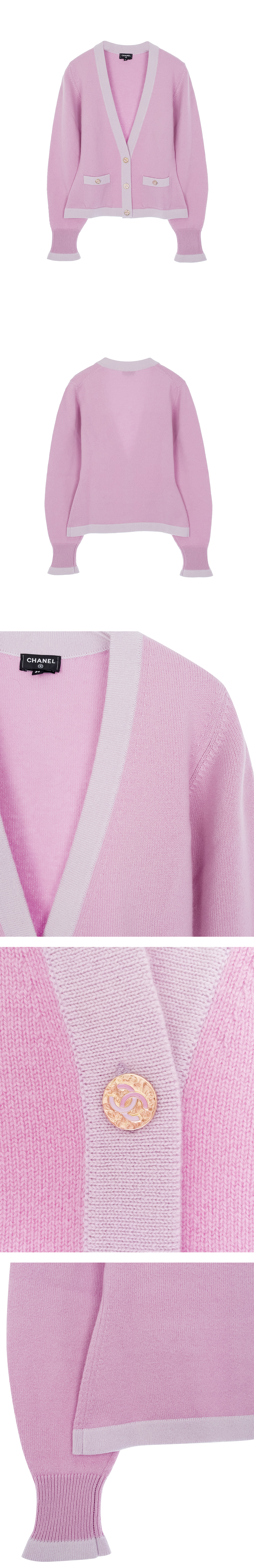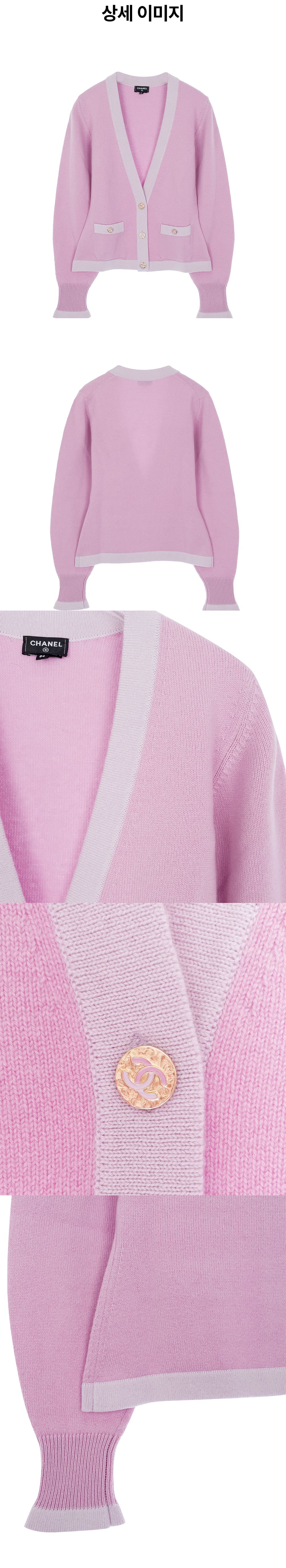 샤넬 23S 캐시미어 가디건 34 다크핑크/라일락