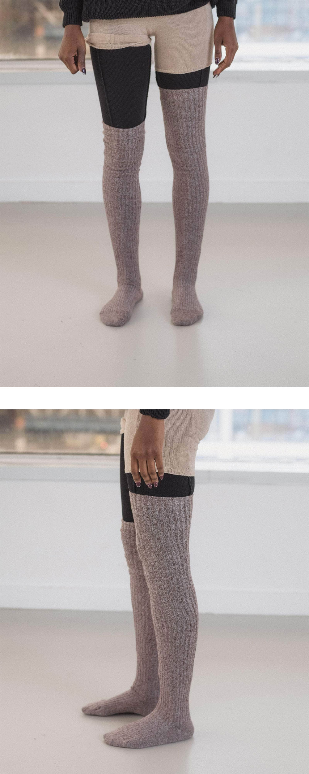 립 니트 조직의 컬러감이 매력적인 베이스레인지의 오버 니삭스 그레이 브라운 컬러입니다. -오가닉 코튼 -립 니트 조직 -니 하이 디자인
