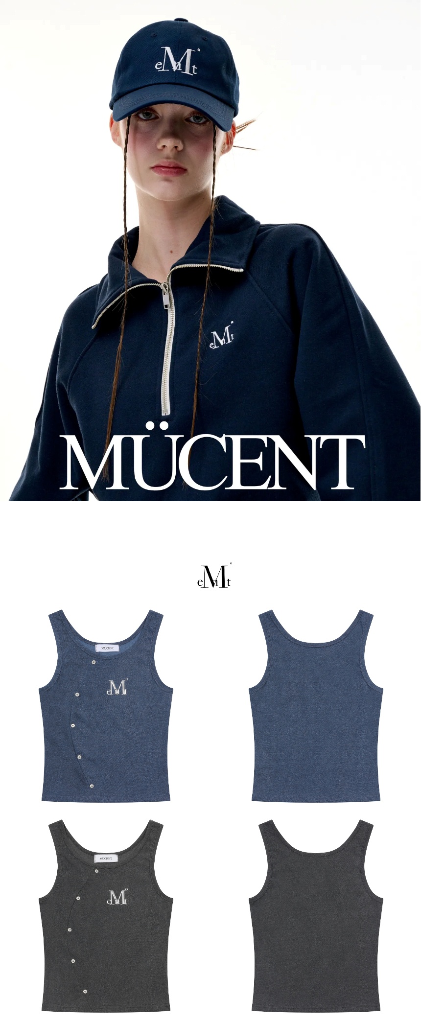 MUCENT Shatt Rivet Pigment Seam Line Metal Logo Sleeveless Navy