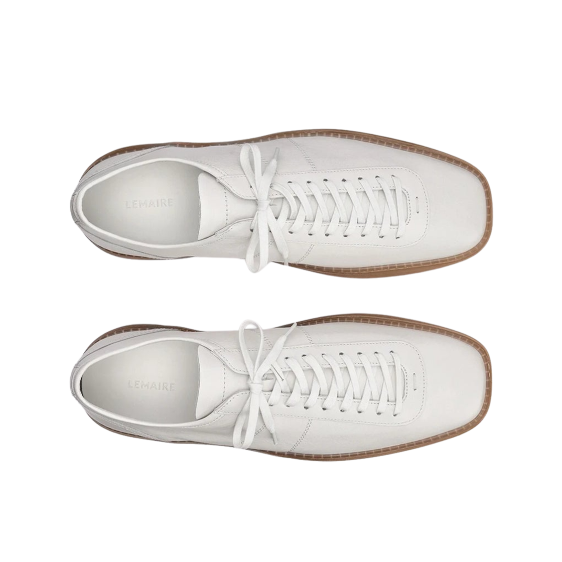 Lemaire Linoleum Laced Up Sneakers with Shiny Leather White